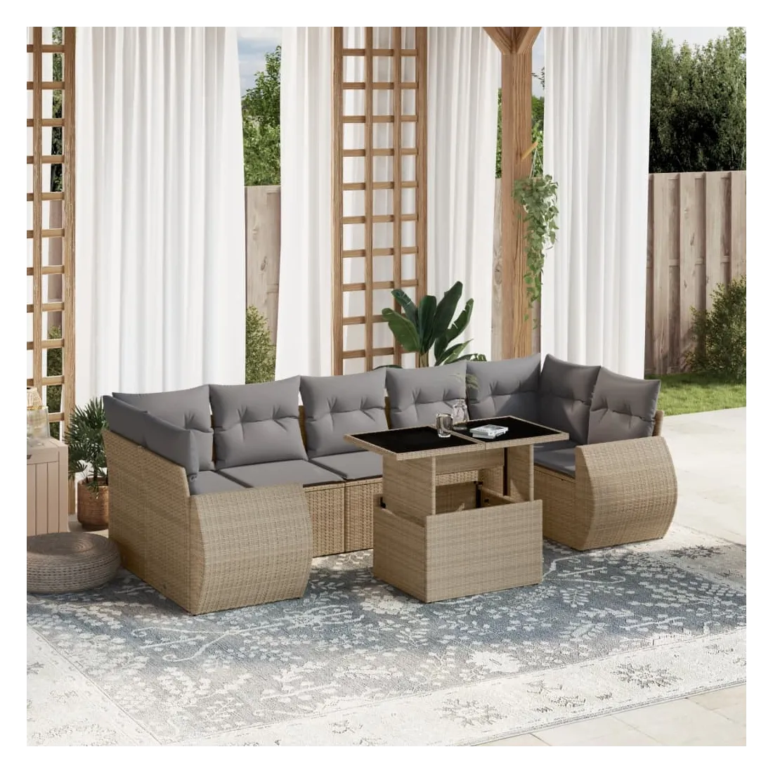 Cet ensemble de canapés de jardin est le complément parfait de votre arrière-cour, terrasse ou patio, offrant un espace confortable et accueillant pour discuter avec la famille et les amis ou simplement se détendre et profiter de l'extérieur. Matériau durable : la résine tressée, également connue sous le nom de poly rotin, est un matériau synthétique solide et nécessitant peu d'entretien qui ressemble au rotin naturel. Il est léger, facile à nettoyer et couramment utilisé pour les meubles d'extérieur en raison de sa durabilité et de ses propriétés de résistance aux intempéries.Dessus de table réglable : le dessus de table peut être soulevé pour rendre la table plus haute, ce qui transforme la table d'extérieur d'une table basse à une table de salle à manger. Elle est parfaite pour recevoir des invités ou prendre des repas à l'extérieur.Expérience d'assise confortable : ce mobilier d'extérieur, doté de coussins épais, offre une expérience d'assise confortable.Housse amovible et lavable : ces coussins de siège sont dotés de housses amovibles pour un lavage et un entretien faciles.Conception modulaire : cet ensemble de meubles d'extérieur a une conception modulaire, ce qui le rend complètement flexible et facile à déplacer, afin que vous puissiez créer un agencement de meubles d'extérieur personnalisé. Bon à savoir :Pour que vos meubles d'extérieur restent beaux, nous vous recommandons de les protéger avec une housse imperméable.