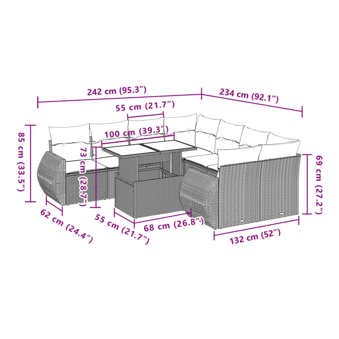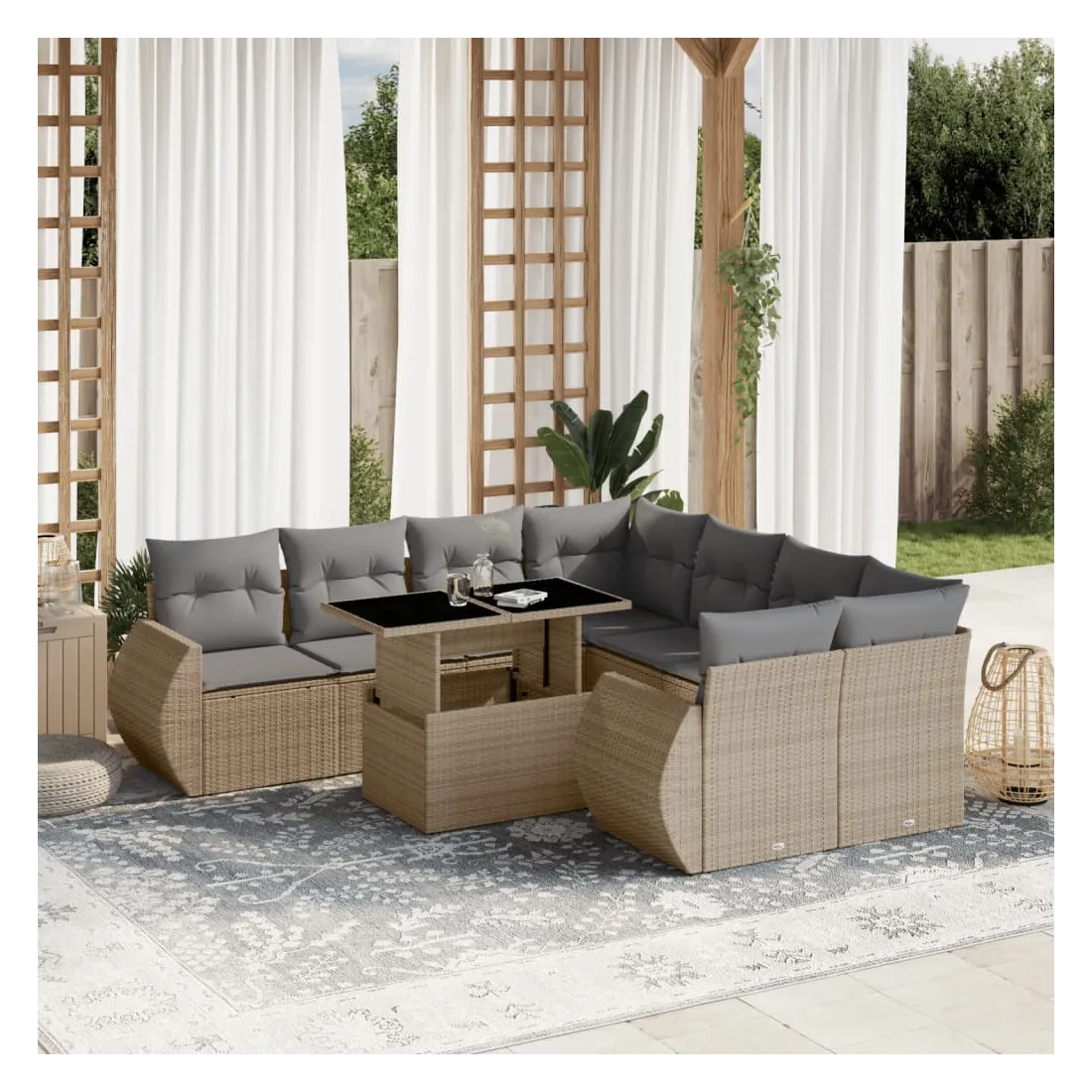 Cet ensemble de canapés de jardin est le complément parfait de votre arrière-cour, terrasse ou patio, offrant un espace confortable et accueillant pour discuter avec la famille et les amis ou simplement se détendre et profiter de l'extérieur. Matériau durable : la résine tressée, également connue sous le nom de poly rotin, est un matériau synthétique solide et nécessitant peu d'entretien qui ressemble au rotin naturel. Il est léger, facile à nettoyer et couramment utilisé pour les meubles d'extérieur en raison de sa durabilité et de ses propriétés de résistance aux intempéries.Dessus de table réglable : le dessus de table peut être soulevé pour rendre la table plus haute, ce qui transforme la table d'extérieur d'une table basse à une table de salle à manger. Elle est parfaite pour recevoir des invités ou prendre des repas à l'extérieur.Expérience d'assise confortable : ce mobilier d'extérieur, doté de coussins épais, offre une expérience d'assise confortable.Housse amovible et lavable : ces coussins de siège sont dotés de housses amovibles pour un lavage et un entretien faciles.Conception modulaire : cet ensemble de meubles d'extérieur a une conception modulaire, ce qui le rend complètement flexible et facile à déplacer, afin que vous puissiez créer un agencement de meubles d'extérieur personnalisé. Bon à savoir :Pour que vos meubles d'extérieur restent beaux, nous vous recommandons de les protéger avec une housse imperméable.