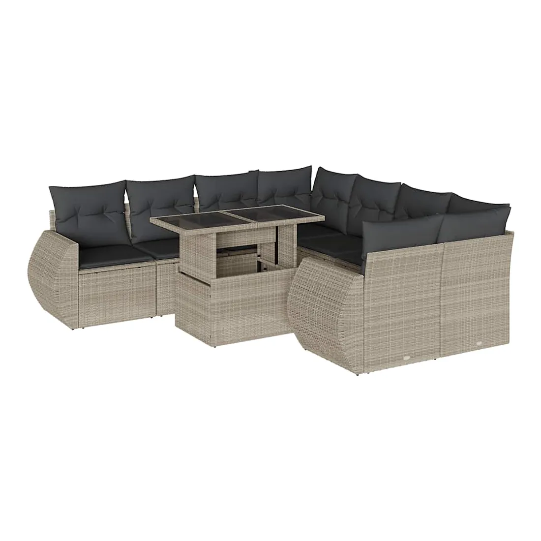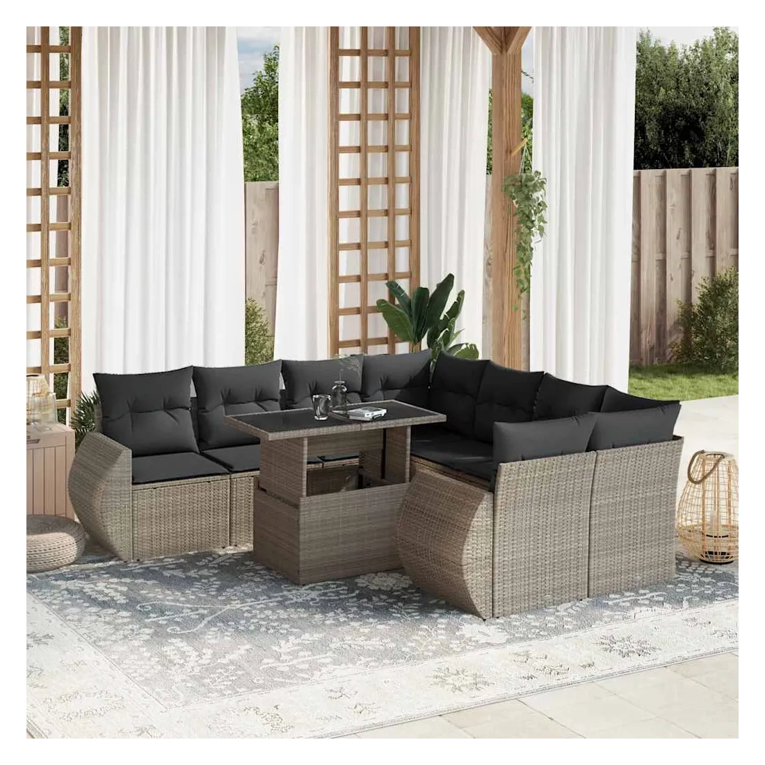 Cet ensemble de canapés de jardin est le complément parfait de votre arrière-cour, terrasse ou patio, offrant un espace confortable et accueillant pour discuter avec la famille et les amis ou simplement se détendre et profiter de l'extérieur. Matériau durable : la résine tressée, également connue sous le nom de poly rotin, est un matériau synthétique solide et nécessitant peu d'entretien qui ressemble au rotin naturel. Elle est légère, facile à nettoyer et couramment utilisée pour les meubles d'extérieur en raison de sa durabilité et de ses propriétés de résistance aux intempéries.Dessus de table réglable : le dessus de table peut être soulevé pour rendre la table plus haute, ce qui transforme la table d'extérieur d'une table basse à une table de salle à manger. Elle est parfaite pour recevoir des invités ou prendre des repas à l'extérieur.Expérience d'assise confortable : ce mobilier d'extérieur, doté de coussins épais, offre une expérience d'assise confortable.Housse amovible et lavable : ces coussins de siège sont dotés de housses amovibles pour un lavage et un entretien faciles.Conception modulaire : cet ensemble de meubles d'extérieur a une conception modulaire, ce qui le rend complètement flexible et facile à déplacer, afin que vous puissiez créer un agencement de meubles d'extérieur personnalisé. Bon à savoir :Pour que vos meubles d'extérieur restent beaux, nous vous recommandons de les protéger avec une housse imperméable.
