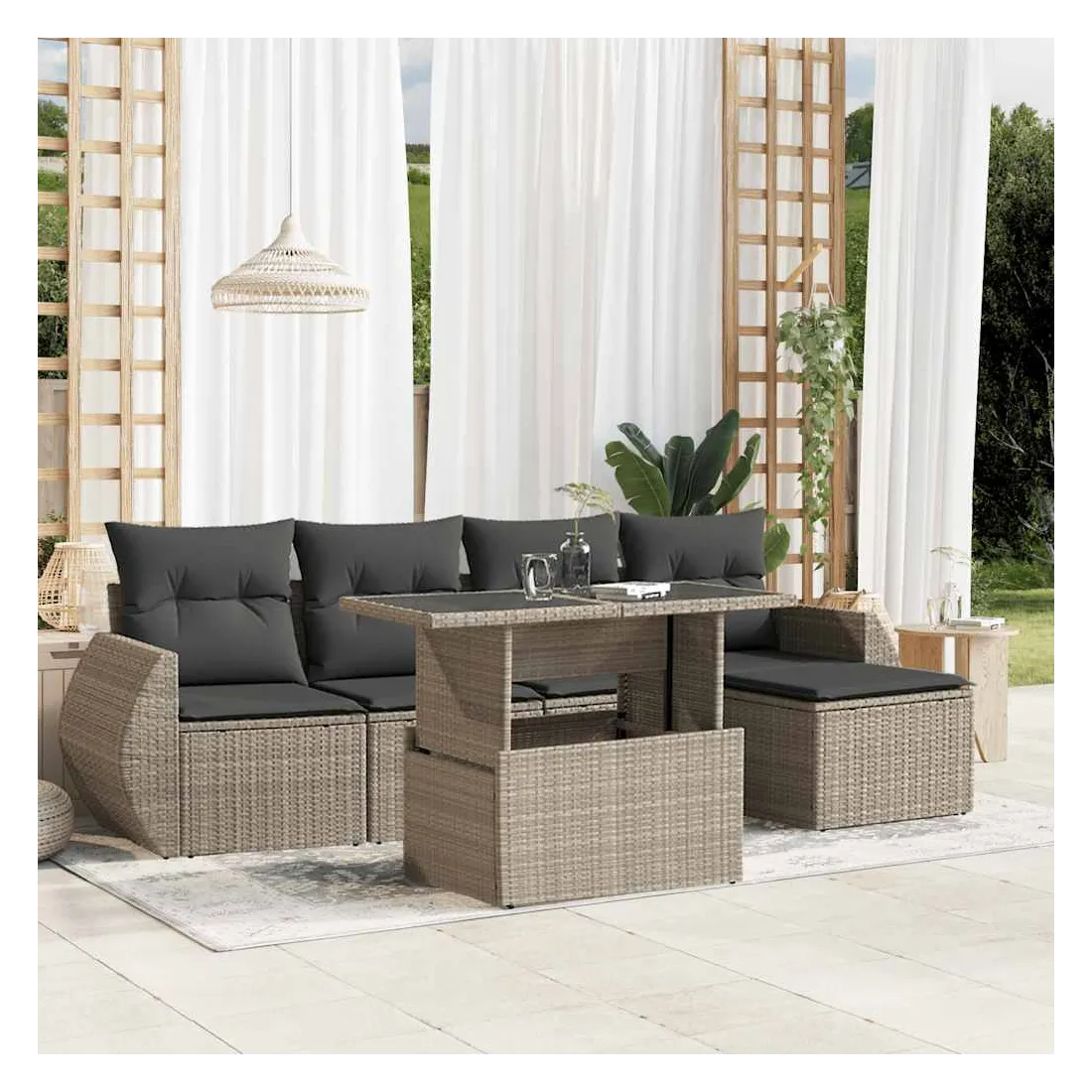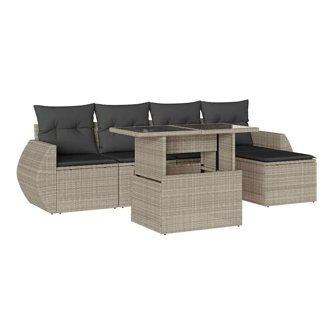 Cet ensemble de canapés de jardin est le complément parfait de votre arrière-cour, terrasse ou patio, offrant un espace confortable et accueillant pour discuter avec la famille et les amis ou simplement se détendre et profiter de l'extérieur. Matériau durable : la résine tressée, également connue sous le nom de poly rotin, est un matériau synthétique solide et nécessitant peu d'entretien qui ressemble au rotin naturel. Elle est légère, facile à nettoyer et couramment utilisée pour les meubles d'extérieur en raison de sa durabilité et de ses propriétés de résistance aux intempéries.Dessus de table réglable : le dessus de table peut être soulevé pour rendre la table plus haute, ce qui transforme la table d'extérieur d'une table basse à une table de salle à manger. Elle est parfaite pour recevoir des invités ou prendre des repas à l'extérieur.Expérience d'assise confortable : ce mobilier d'extérieur, doté de coussins épais, offre une expérience d'assise confortable.Housse amovible et lavable : ces coussins de siège sont dotés de housses amovibles pour un lavage et un entretien faciles.Conception modulaire : cet ensemble de meubles d'extérieur a une conception modulaire, ce qui le rend complètement flexible et facile à déplacer, afin que vous puissiez créer un agencement de meubles d'extérieur personnalisé. Bon à savoir :Pour que vos meubles d'extérieur restent beaux, nous vous recommandons de les protéger avec une housse imperméable.