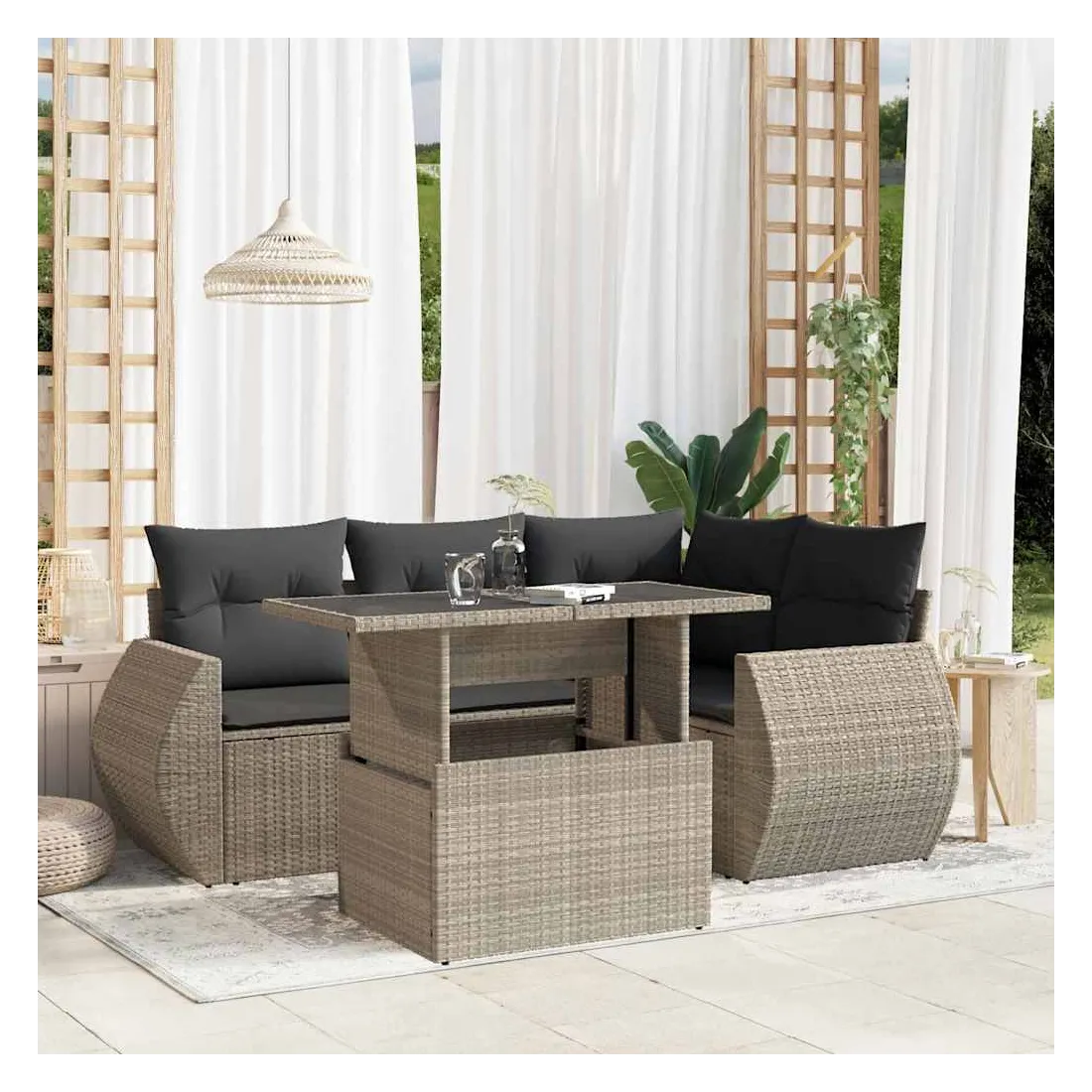 Cet ensemble de canapés de jardin est le complément parfait de votre arrière-cour, terrasse ou patio, offrant un espace confortable et accueillant pour discuter avec la famille et les amis ou simplement se détendre et profiter de l'extérieur. Matériau durable : la résine tressée, également connue sous le nom de poly rotin, est un matériau synthétique solide et nécessitant peu d'entretien qui ressemble au rotin naturel. Elle est légère, facile à nettoyer et couramment utilisée pour les meubles d'extérieur en raison de sa durabilité et de ses propriétés de résistance aux intempéries.Dessus de table réglable : le dessus de table peut être soulevé pour rendre la table plus haute, ce qui transforme la table d'extérieur d'une table basse à une table de salle à manger. Elle est parfaite pour recevoir des invités ou prendre des repas à l'extérieur.Expérience d'assise confortable : ce mobilier d'extérieur, doté de coussins épais, offre une expérience d'assise confortable.Housse amovible et lavable : ces coussins de siège sont dotés de housses amovibles pour un lavage et un entretien faciles.Conception modulaire : cet ensemble de meubles d'extérieur a une conception modulaire, ce qui le rend complètement flexible et facile à déplacer, afin que vous puissiez créer un agencement de meubles d'extérieur personnalisé. Bon à savoir :Pour que vos meubles d'extérieur restent beaux, nous vous recommandons de les protéger avec une housse imperméable.