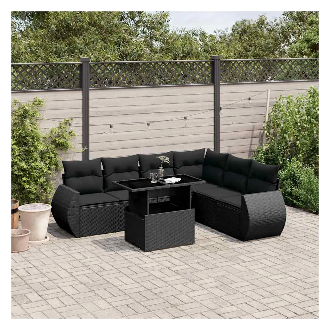 Cet ensemble de canapés de jardin est le complément parfait de votre arrière-cour, terrasse ou patio, offrant un espace confortable et accueillant pour discuter avec la famille et les amis ou simplement se détendre et profiter de l'extérieur. Matériau durable : la résine tressée, également connue sous le nom de poly rotin, est un matériau synthétique solide et nécessitant peu d'entretien qui ressemble au rotin naturel. Il est léger, facile à nettoyer et couramment utilisé pour les meubles d'extérieur en raison de sa durabilité et de ses propriétés de résistance aux intempéries.Dessus de table réglable : le dessus de table peut être soulevé pour rendre la table plus haute, ce qui transforme la table d'extérieur d'une table basse à une table de salle à manger. Elle est parfaite pour recevoir des invités ou prendre des repas à l'extérieur.Expérience d'assise confortable : ce mobilier d'extérieur, doté de coussins épais, offre une expérience d'assise confortable.Housse amovible et lavable : ces coussins de siège sont dotés de housses amovibles pour un lavage et un entretien faciles.Conception modulaire : cet ensemble de meubles d'extérieur a une conception modulaire, ce qui le rend complètement flexible et facile à déplacer, afin que vous puissiez créer un agencement de meubles d'extérieur personnalisé. Bon à savoir :Pour que vos meubles d'extérieur restent beaux, nous vous recommandons de les protéger avec une housse imperméable.