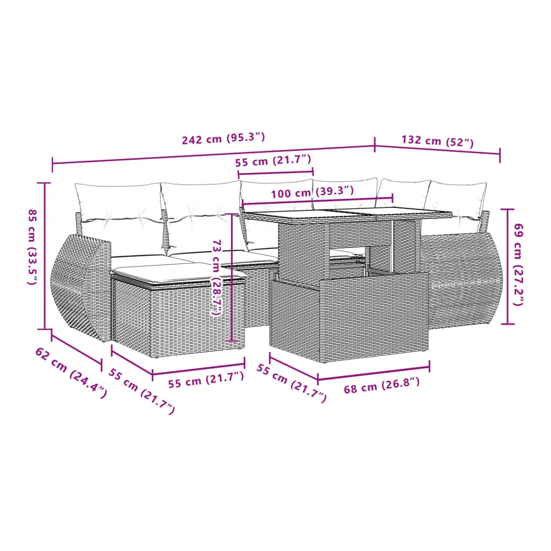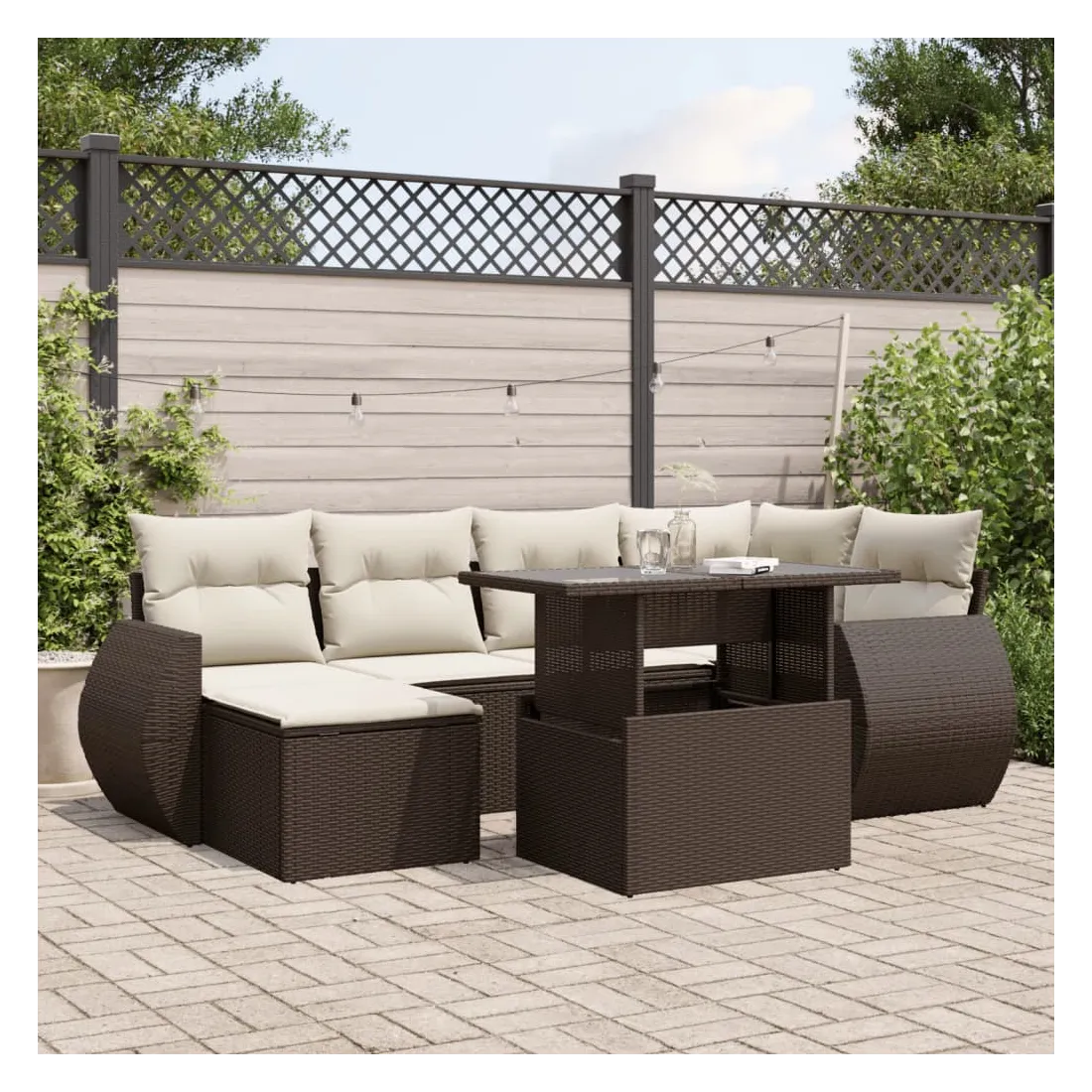Cet ensemble de canapés de jardin est le complément parfait de votre arrière-cour, terrasse ou patio, offrant un espace confortable et accueillant pour discuter avec la famille et les amis ou simplement se détendre et profiter de l'extérieur. Matériau durable : la résine tressée, également connue sous le nom de poly rotin, est un matériau synthétique solide et nécessitant peu d'entretien qui ressemble au rotin naturel. Elle est légère, facile à nettoyer et couramment utilisée pour les meubles d'extérieur en raison de sa durabilité et de ses propriétés de résistance aux intempéries.Dessus de table réglable : le dessus de table peut être soulevé pour rendre la table plus haute, ce qui transforme la table d'extérieur d'une table basse à une table de salle à manger. Elle est parfaite pour recevoir des invités ou prendre des repas à l'extérieur.Expérience d'assise confortable : ce mobilier d'extérieur, doté de coussins épais, offre une expérience d'assise confortable.Housse amovible et lavable : ces coussins de siège sont dotés de housses amovibles pour un lavage et un entretien faciles.Conception modulaire : cet ensemble de meubles d'extérieur a une conception modulaire, ce qui le rend complètement flexible et facile à déplacer, afin que vous puissiez créer un agencement de meubles d'extérieur personnalisé. Bon à savoir :Pour que vos meubles d'extérieur restent beaux, nous vous recommandons de les protéger avec une housse imperméable.