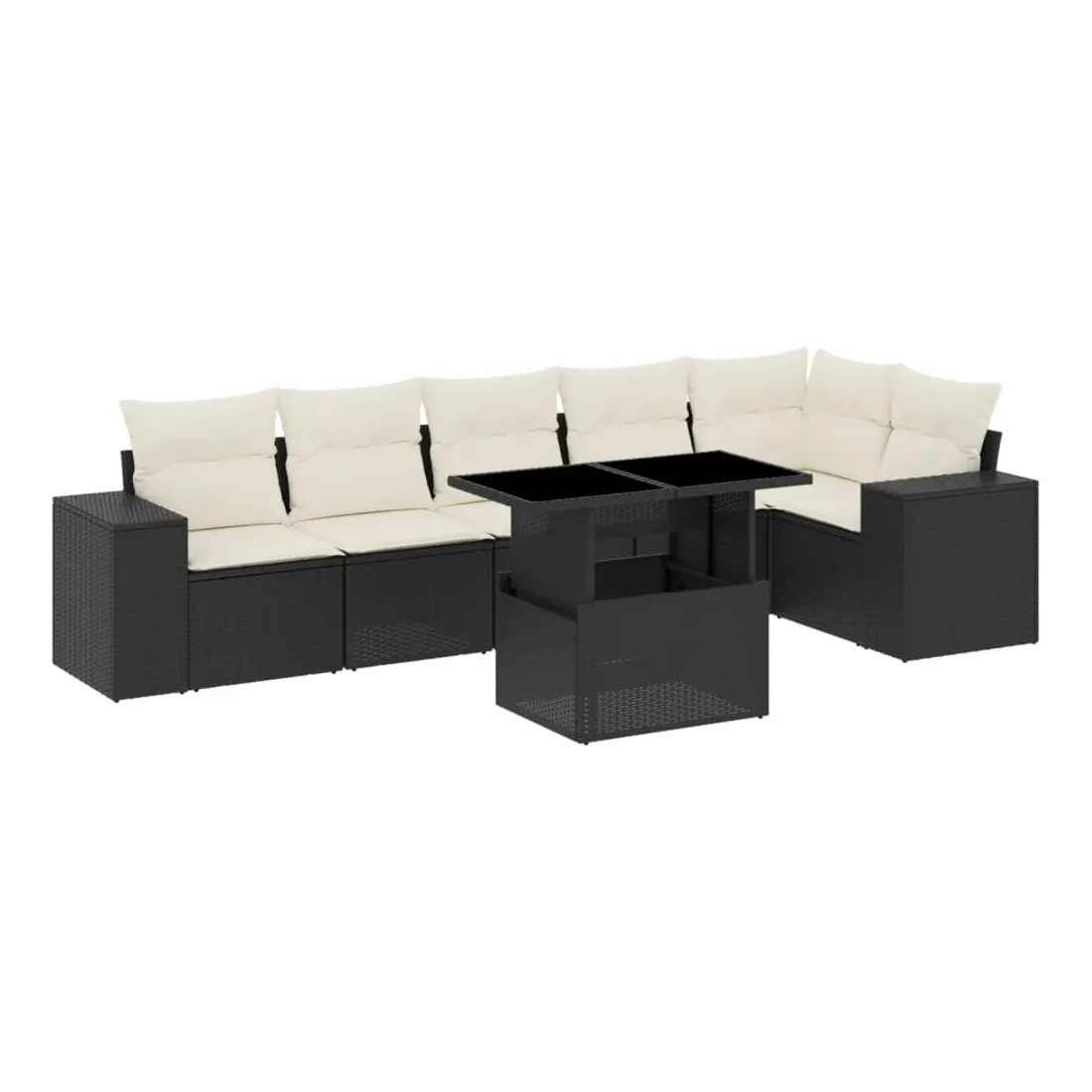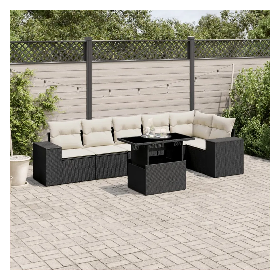 Salon de jardin 7 pcs avec coussins noir résine tressée