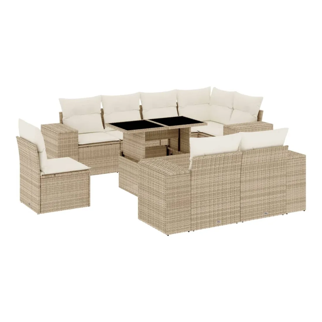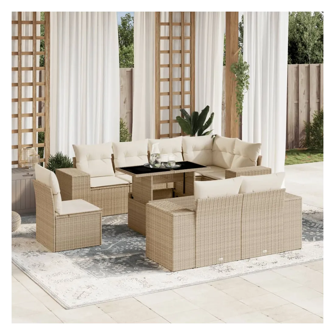 Cet ensemble de canapés de jardin est le complément parfait de votre arrière-cour, terrasse ou patio, offrant un espace confortable et accueillant pour discuter avec la famille et les amis ou simplement se détendre et profiter de l'extérieur. Matériau durable : la résine tressée, également connue sous le nom de poly rotin, est un matériau synthétique solide et nécessitant peu d'entretien qui ressemble au rotin naturel. Il est léger, facile à nettoyer et couramment utilisé pour les meubles d'extérieur en raison de sa durabilité et de ses propriétés de résistance aux intempéries.Dessus de table réglable : le dessus de table peut être soulevé pour rendre la table plus haute, ce qui transforme la table d'extérieur d'une table basse à une table de salle à manger. Elle est parfaite pour recevoir des invités ou prendre des repas à l'extérieur.Expérience d'assise confortable : ce mobilier d'extérieur, doté de coussins épais, offre une expérience d'assise confortable.Housse amovible et lavable : ces coussins de siège sont dotés de housses amovibles pour un lavage et un entretien faciles.Conception modulaire : cet ensemble de meubles d'extérieur a une conception modulaire, ce qui le rend complètement flexible et facile à déplacer, afin que vous puissiez créer un agencement de meubles d'extérieur personnalisé. Bon à savoir :Pour que vos meubles d'extérieur restent beaux, nous vous recommandons de les protéger avec une housse imperméable.