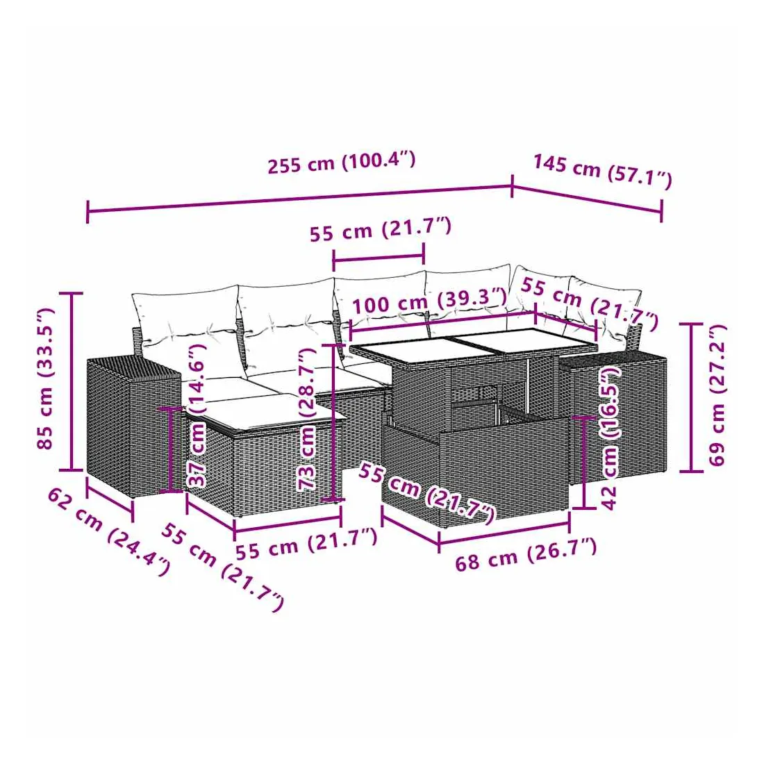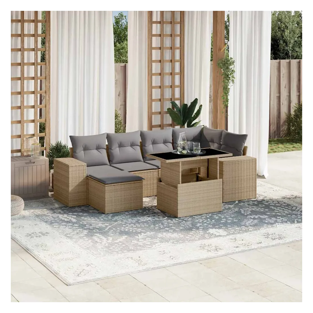 Cet ensemble de canapés de jardin est le complément parfait de votre arrière-cour, terrasse ou patio, offrant un espace confortable et accueillant pour discuter avec la famille et les amis ou simplement se détendre et profiter de l'extérieur. Matériau durable : la résine tressée, également connue sous le nom de poly rotin, est un matériau synthétique solide et nécessitant peu d'entretien qui ressemble au rotin naturel. Il est léger, facile à nettoyer et couramment utilisé pour les meubles d'extérieur en raison de sa durabilité et de ses propriétés de résistance aux intempéries.Dessus de table réglable : le dessus de table peut être soulevé pour rendre la table plus haute, ce qui transforme la table d'extérieur d'une table basse à une table de salle à manger. Elle est parfaite pour recevoir des invités ou prendre des repas à l'extérieur.Expérience d'assise confortable : ce mobilier d'extérieur, doté de coussins épais, offre une expérience d'assise confortable.Housse amovible et lavable : ces coussins de siège sont dotés de housses amovibles pour un lavage et un entretien faciles.Conception modulaire : cet ensemble de meubles d'extérieur a une conception modulaire, ce qui le rend complètement flexible et facile à déplacer, afin que vous puissiez créer un agencement de meubles d'extérieur personnalisé. Bon à savoir :Pour que vos meubles d'extérieur restent beaux, nous vous recommandons de les protéger avec une housse imperméable.
