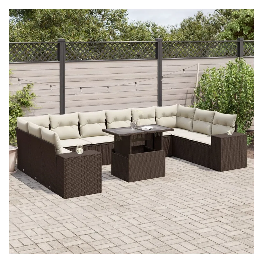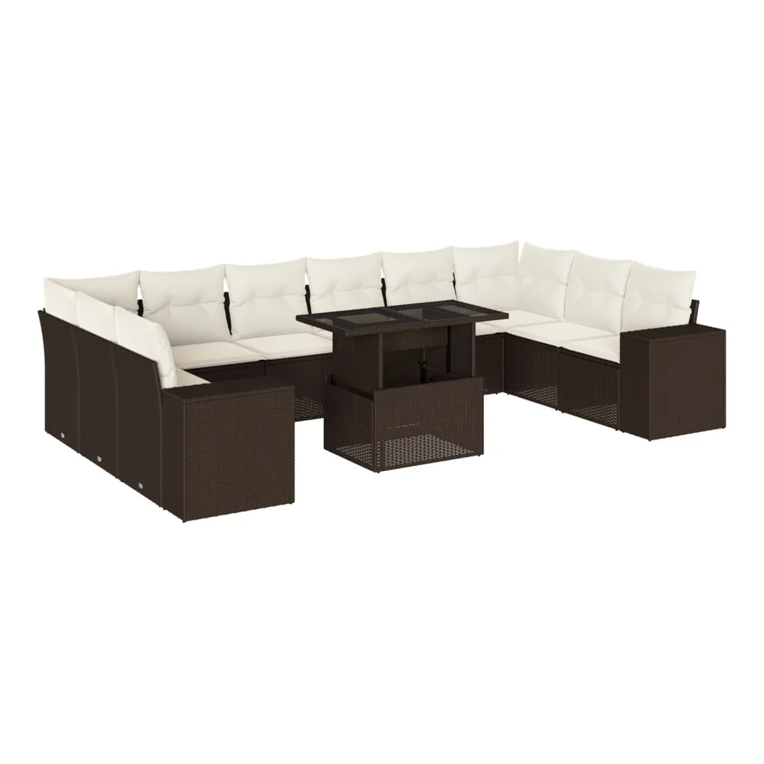 Salon de jardin et coussins 11 pcs marron résine tressée