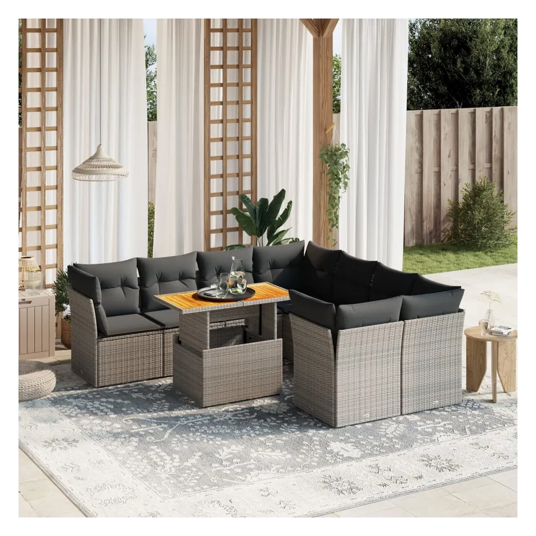 Cet ensemble de canapés de jardin est le complément parfait de votre arrière-cour, terrasse ou patio, offrant un espace confortable et accueillant pour discuter avec la famille et les amis ou simplement se détendre et profiter de l'extérieur. Matériau durable : la résine tressée, également connue sous le nom de poly rotin, est un matériau synthétique solide et nécessitant peu d'entretien qui ressemble au rotin naturel. Il est léger, facile à nettoyer et couramment utilisé pour les meubles d'extérieur en raison de sa durabilité et de ses propriétés de résistance aux intempéries.Dessus de table réglable : le dessus de table peut être soulevé pour rendre la table plus haute, ce qui transforme la table d'extérieur d'une table basse à une table de salle à manger. Elle est parfaite pour recevoir des invités ou prendre des repas à l'extérieur.Expérience d'assise confortable : ce mobilier d'extérieur, doté de coussins épais, offre une expérience d'assise confortable.Housse amovible et lavable : ces coussins de siège sont dotés de housses amovibles pour un lavage et un entretien faciles.Conception modulaire : cet ensemble de meubles d'extérieur a une conception modulaire, ce qui le rend complètement flexible et facile à déplacer, afin que vous puissiez créer un agencement de meubles d'extérieur personnalisé. Bon à savoir :Pour que vos meubles d'extérieur restent beaux, nous vous recommandons de les protéger avec une housse imperméable.
