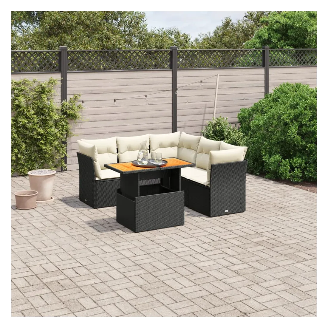 Cet ensemble de canapés de jardin est le complément parfait de votre arrière-cour, terrasse ou patio, offrant un espace confortable et accueillant pour discuter avec la famille et les amis ou simplement se détendre et profiter de l'extérieur. Matériau durable : la résine tressée, également connue sous le nom de poly rotin, est un matériau synthétique solide et nécessitant peu d'entretien qui ressemble au rotin naturel. Il est léger, facile à nettoyer et couramment utilisé pour les meubles d'extérieur en raison de sa durabilité et de ses propriétés de résistance aux intempéries.Dessus de table réglable : le dessus de table peut être soulevé pour rendre la table plus haute, ce qui transforme la table d'extérieur d'une table basse à une table de salle à manger. Elle est parfaite pour recevoir des invités ou prendre des repas à l'extérieur.Expérience d'assise confortable : ce mobilier d'extérieur, doté de coussins épais, offre une expérience d'assise confortable.Housse amovible et lavable : ces coussins de siège sont dotés de housses amovibles pour un lavage et un entretien faciles.Conception modulaire : cet ensemble de meubles d'extérieur a une conception modulaire, ce qui le rend complètement flexible et facile à déplacer, afin que vous puissiez créer un agencement de meubles d'extérieur personnalisé. Bon à savoir :Pour que vos meubles d'extérieur restent beaux, nous vous recommandons de les protéger avec une housse imperméable.