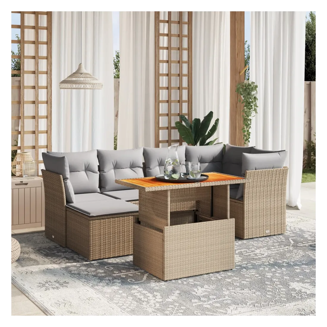 - Matériau : résine tressée, acier enduit de poudre, bois d'acacia massif avec finition à l'huile