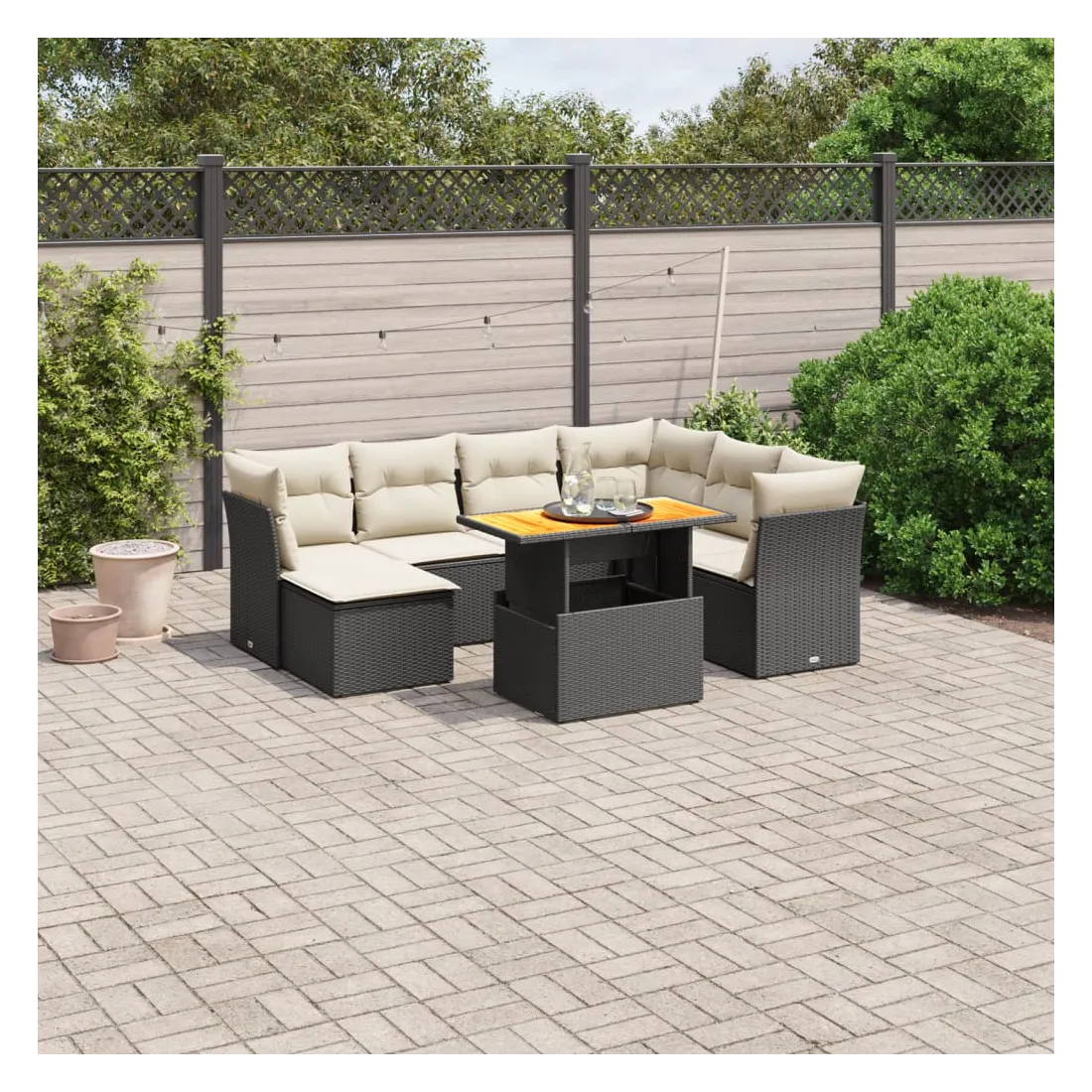 Cet ensemble de canapés de jardin est le complément parfait de votre arrière-cour, terrasse ou patio, offrant un espace confortable et accueillant pour discuter avec la famille et les amis ou simplement se détendre et profiter de l'extérieur. Matériau durable : la résine tressée, également connue sous le nom de poly rotin, est un matériau synthétique solide et nécessitant peu d'entretien qui ressemble au rotin naturel. Il est léger, facile à nettoyer et couramment utilisé pour les meubles d'extérieur en raison de sa durabilité et de ses propriétés de résistance aux intempéries.Dessus de table réglable : le dessus de table peut être soulevé pour rendre la table plus haute, ce qui transforme la table d'extérieur d'une table basse à une table de salle à manger. Elle est parfaite pour recevoir des invités ou prendre des repas à l'extérieur.Expérience d'assise confortable : ce mobilier d'extérieur, doté de coussins épais, offre une expérience d'assise confortable.Housse amovible et lavable : ces coussins de siège sont dotés de housses amovibles pour un lavage et un entretien faciles.Conception modulaire : cet ensemble de meubles d'extérieur a une conception modulaire, ce qui le rend complètement flexible et facile à déplacer, afin que vous puissiez créer un agencement de meubles d'extérieur personnalisé. Bon à savoir :Pour que vos meubles d'extérieur restent beaux, nous vous recommandons de les protéger avec une housse imperméable.