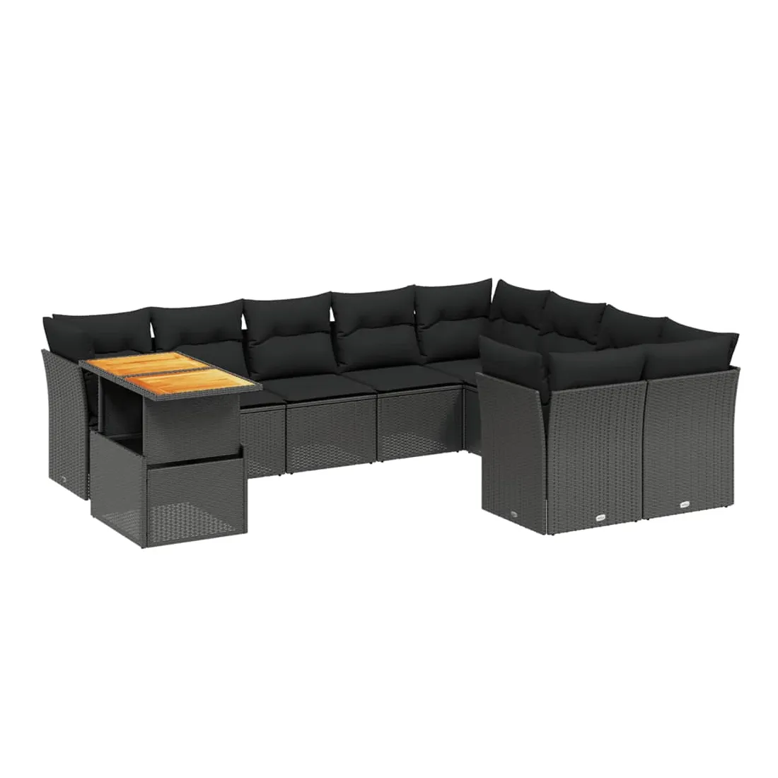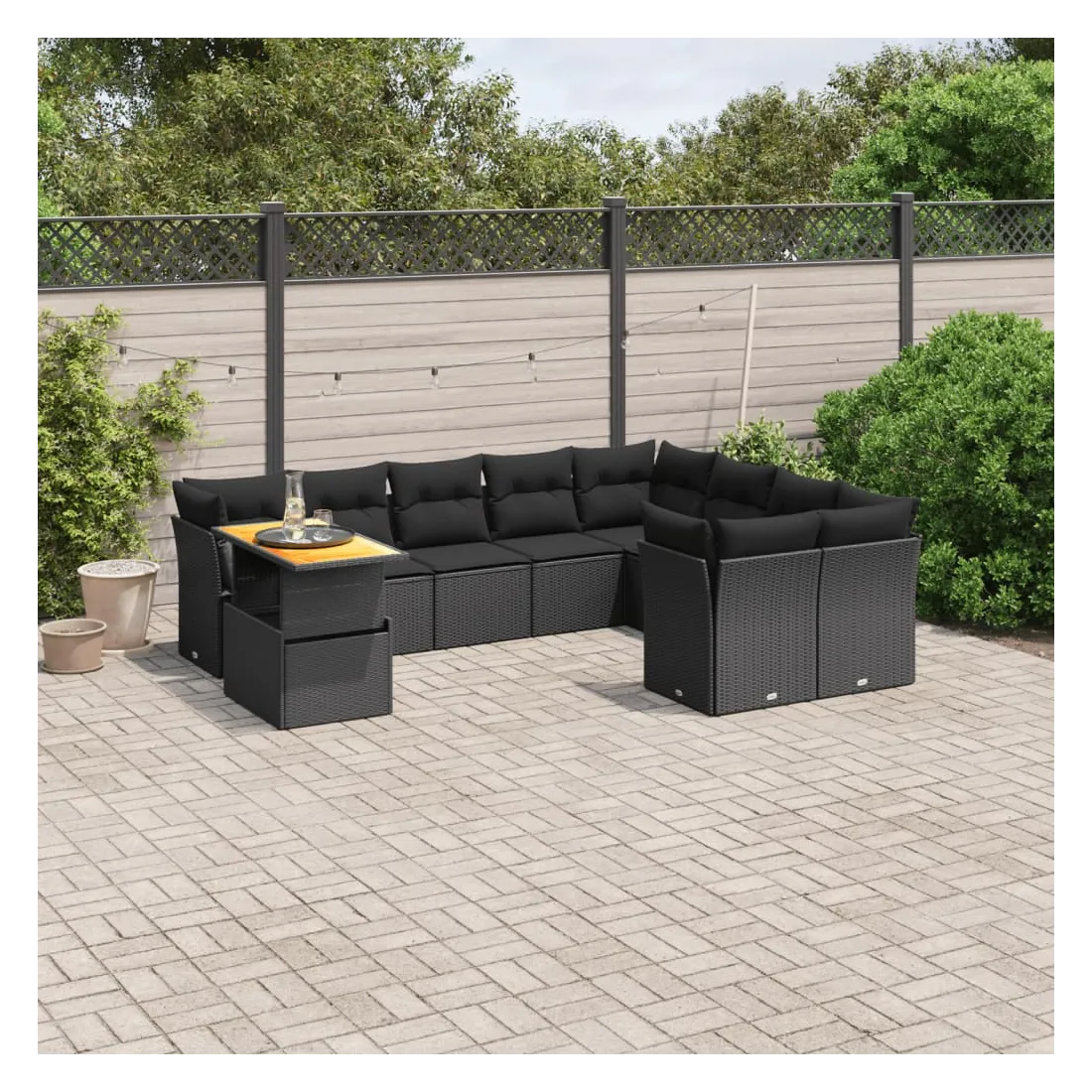 Salon de jardin 10 pcs avec coussins noir résine tressée