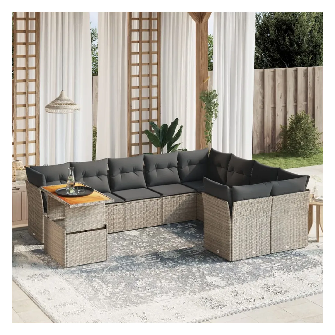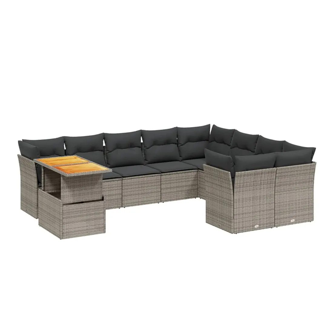 Salon de jardin avec coussins 10 pcs gris résine tressée