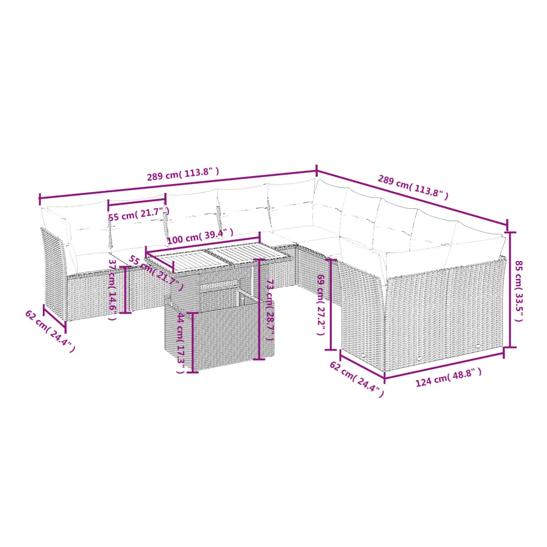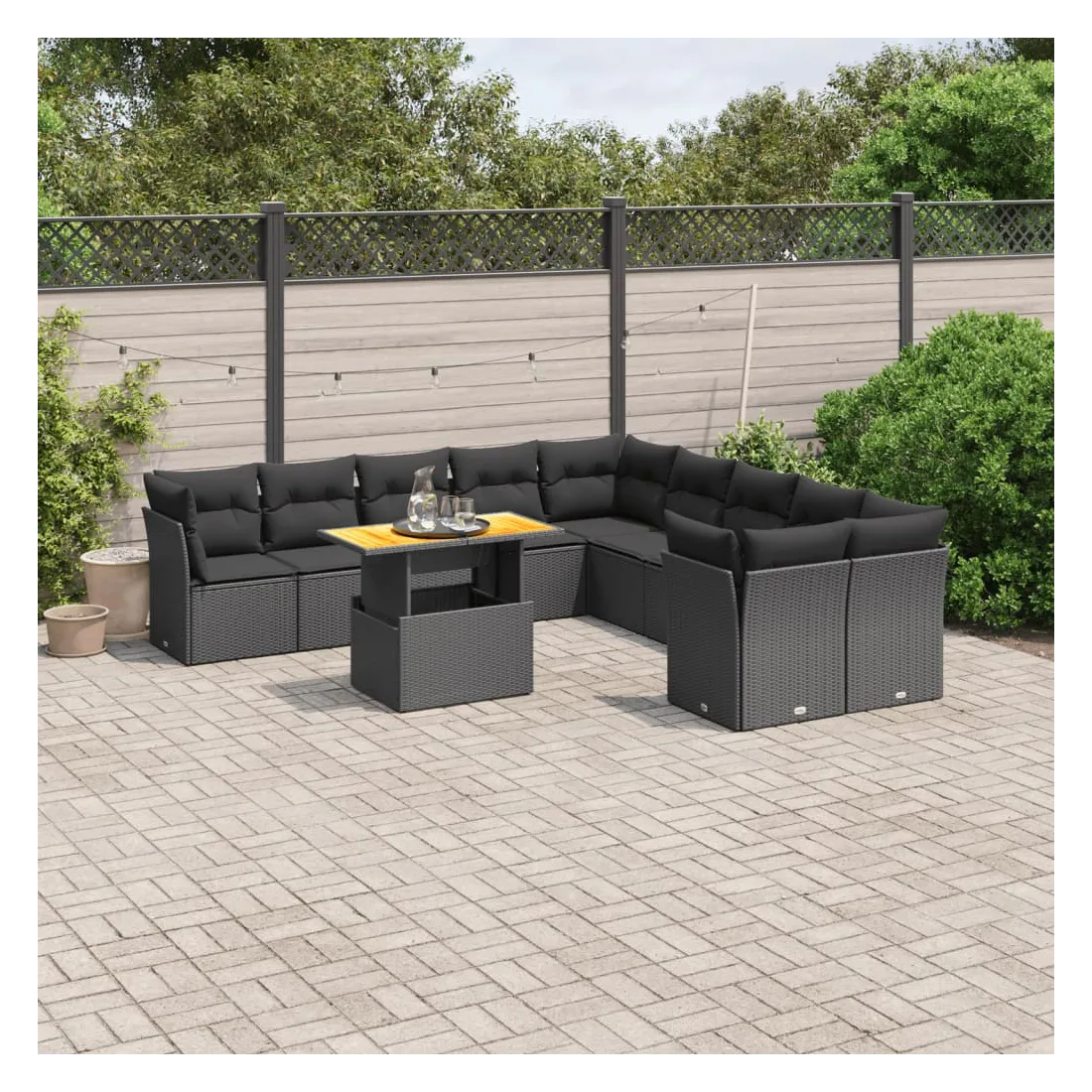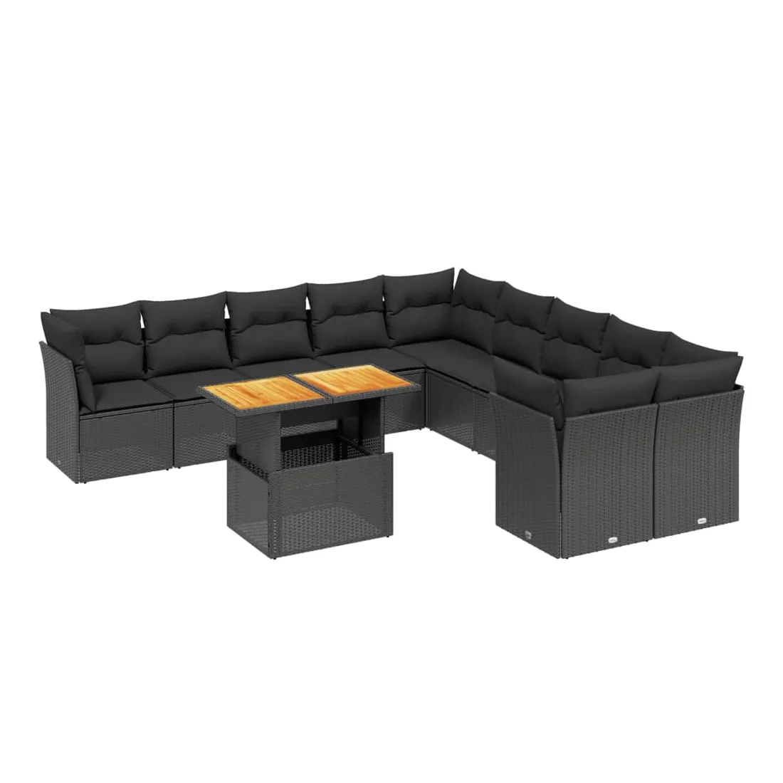 Salon de jardin 11 pcs avec coussins noir résine tressée