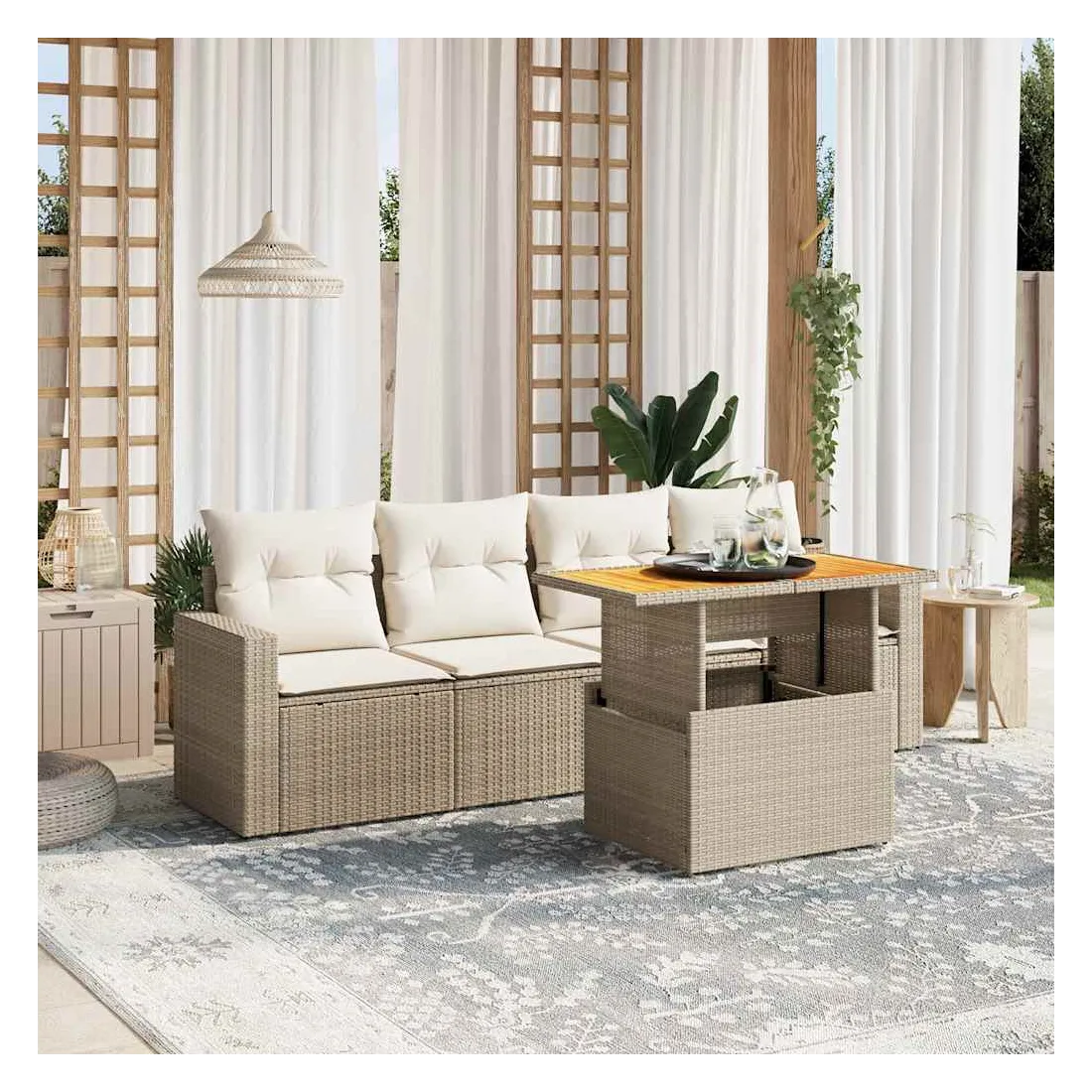 - Matériau : résine tressée, acier enduit de poudre, bois d'acacia massif avec finition à l'huile