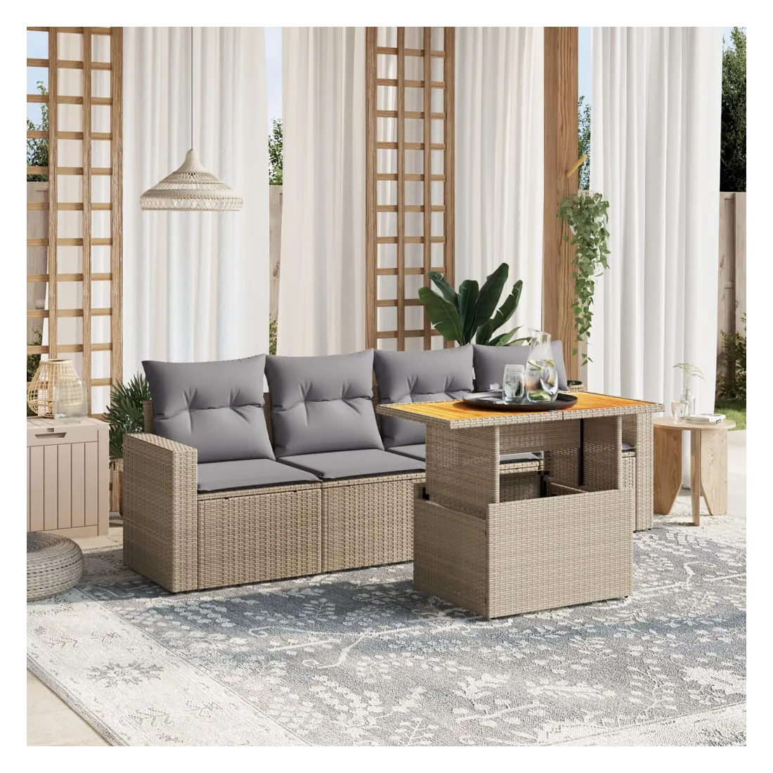 Cet ensemble de canapés de jardin est le complément parfait de votre arrière-cour, terrasse ou patio, offrant un espace confortable et accueillant pour discuter avec la famille et les amis ou simplement se détendre et profiter de l'extérieur. Matériau durable : la résine tressée, également connue sous le nom de poly rotin, est un matériau synthétique solide et nécessitant peu d'entretien qui ressemble au rotin naturel. Il est léger, facile à nettoyer et couramment utilisé pour les meubles d'extérieur en raison de sa durabilité et de ses propriétés de résistance aux intempéries.Dessus de table réglable : le dessus de table peut être soulevé pour rendre la table plus haute, ce qui transforme la table d'extérieur d'une table basse à une table de salle à manger. Elle est parfaite pour recevoir des invités ou prendre des repas à l'extérieur.Expérience d'assise confortable : ce mobilier d'extérieur, doté de coussins épais, offre une expérience d'assise confortable.Housse amovible et lavable : ces coussins de siège sont dotés de housses amovibles pour un lavage et un entretien faciles.Conception modulaire : cet ensemble de meubles d'extérieur a une conception modulaire, ce qui le rend complètement flexible et facile à déplacer, afin que vous puissiez créer un agencement de meubles d'extérieur personnalisé. Bon à savoir :Pour que vos meubles d'extérieur restent beaux, nous vous recommandons de les protéger avec une housse imperméable.