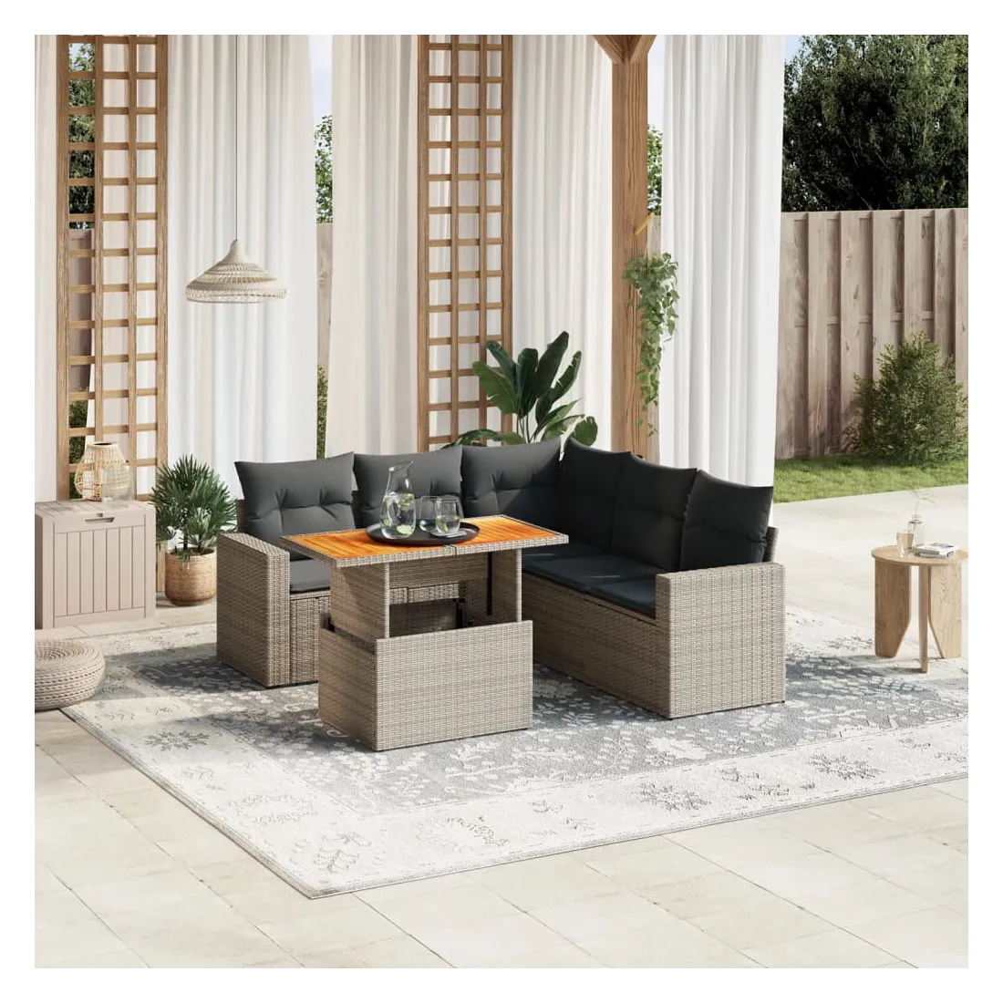 Cet ensemble de canapés de jardin est le complément parfait de votre arrière-cour, terrasse ou patio, offrant un espace confortable et accueillant pour discuter avec la famille et les amis ou simplement se détendre et profiter de l'extérieur. Matériau durable : la résine tressée, également connue sous le nom de poly rotin, est un matériau synthétique solide et nécessitant peu d'entretien qui ressemble au rotin naturel. Il est léger, facile à nettoyer et couramment utilisé pour les meubles d'extérieur en raison de sa durabilité et de ses propriétés de résistance aux intempéries.Dessus de table réglable : le dessus de table peut être soulevé pour rendre la table plus haute, ce qui transforme la table d'extérieur d'une table basse à une table de salle à manger. Elle est parfaite pour recevoir des invités ou prendre des repas à l'extérieur.Expérience d'assise confortable : ce mobilier d'extérieur, doté de coussins épais, offre une expérience d'assise confortable.Housse amovible et lavable : ces coussins de siège sont dotés de housses amovibles pour un lavage et un entretien faciles.Conception modulaire : cet ensemble de meubles d'extérieur a une conception modulaire, ce qui le rend complètement flexible et facile à déplacer, afin que vous puissiez créer un agencement de meubles d'extérieur personnalisé. Bon à savoir :Pour que vos meubles d'extérieur restent beaux, nous vous recommandons de les protéger avec une housse imperméable.