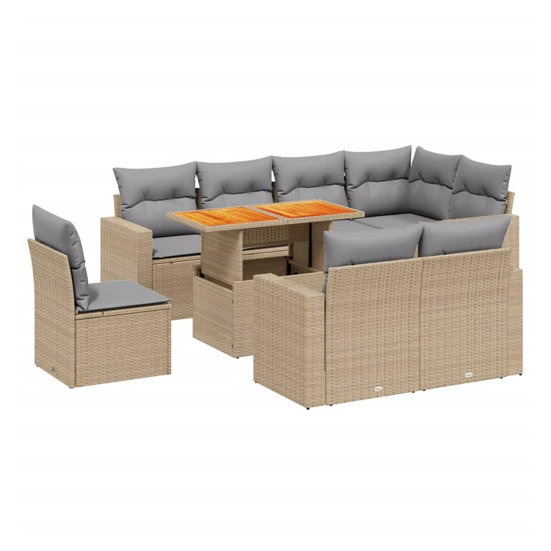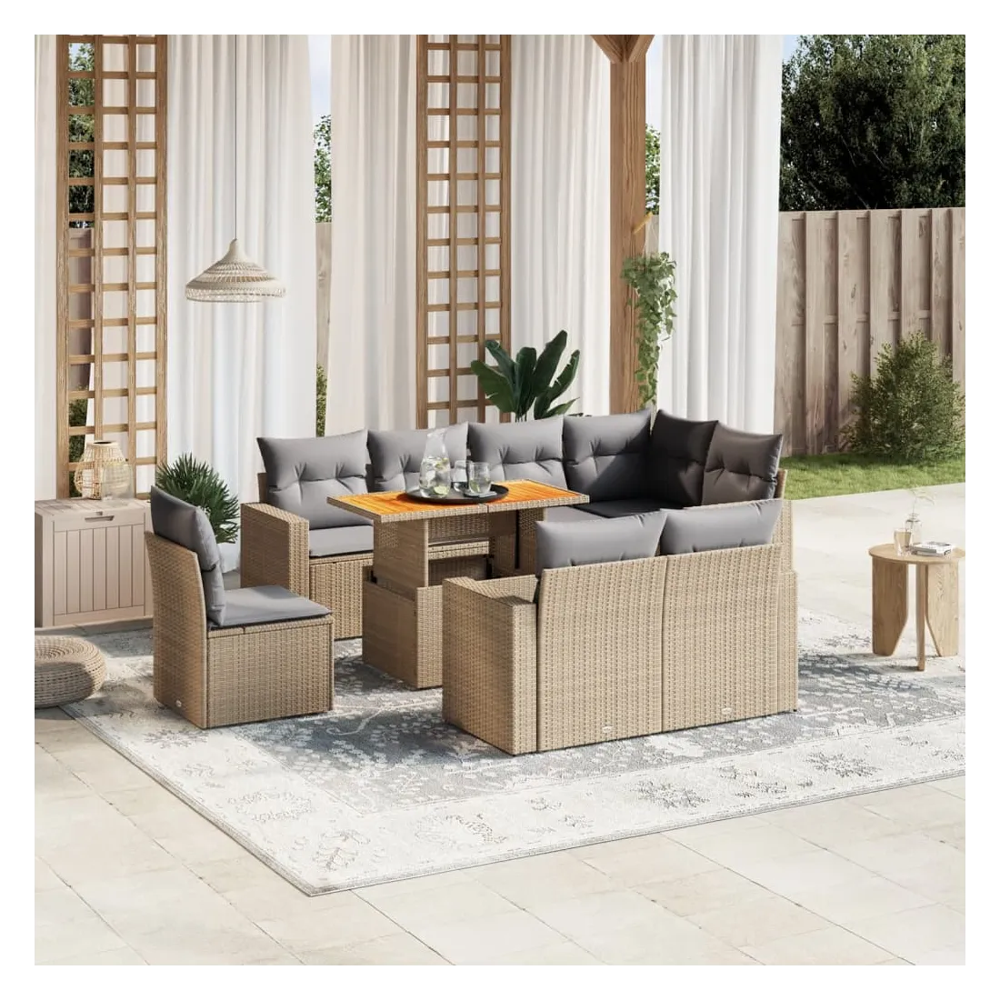 Cet ensemble de canapés de jardin est le complément parfait de votre arrière-cour, terrasse ou patio, offrant un espace confortable et accueillant pour discuter avec la famille et les amis ou simplement se détendre et profiter de l'extérieur. Matériau durable : la résine tressée, également connue sous le nom de poly rotin, est un matériau synthétique solide et nécessitant peu d'entretien qui ressemble au rotin naturel. Il est léger, facile à nettoyer et couramment utilisé pour les meubles d'extérieur en raison de sa durabilité et de ses propriétés de résistance aux intempéries.Dessus de table réglable : le dessus de table peut être soulevé pour rendre la table plus haute, ce qui transforme la table d'extérieur d'une table basse à une table de salle à manger. Elle est parfaite pour recevoir des invités ou prendre des repas à l'extérieur.Expérience d'assise confortable : ce mobilier d'extérieur, doté de coussins épais, offre une expérience d'assise confortable.Housse amovible et lavable : ces coussins de siège sont dotés de housses amovibles pour un lavage et un entretien faciles.Conception modulaire : cet ensemble de meubles d'extérieur a une conception modulaire, ce qui le rend complètement flexible et facile à déplacer, afin que vous puissiez créer un agencement de meubles d'extérieur personnalisé. Bon à savoir :Pour que vos meubles d'extérieur restent beaux, nous vous recommandons de les protéger avec une housse imperméable.