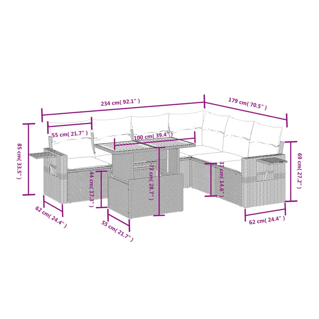 Cet ensemble de canapés de jardin est le complément parfait de votre arrière-cour, terrasse ou patio, offrant un espace confortable et accueillant pour discuter avec la famille et les amis ou simplement se détendre et profiter de l'extérieur. Matériau durable : la résine tressée, également connue sous le nom de poly rotin, est un matériau synthétique solide et nécessitant peu d'entretien qui ressemble au rotin naturel. Il est léger, facile à nettoyer et couramment utilisé pour les meubles d'extérieur en raison de sa durabilité et de ses propriétés de résistance aux intempéries.Dessus de table réglable : le dessus de table peut être soulevé pour rendre la table plus haute, ce qui transforme la table d'extérieur d'une table basse à une table de salle à manger. Elle est parfaite pour recevoir des invités ou prendre des repas à l'extérieur.Table d'appoint pratique : ce mobilier d'extérieur comprend une table d'appoint pliable avec un ressort à gaz sur les accoudoirs, offrant un endroit pratique pour garder vos essentiels à portée de main.Housse amovible et lavable : ces coussins de siège sont dotés de housses amovibles pour un lavage et un entretien faciles.Conception modulaire : cet ensemble de meubles d'extérieur a une conception modulaire, ce qui le rend complètement flexible et facile à déplacer, afin que vous puissiez créer un agencement de meubles d'extérieur personnalisé. Bon à savoir :Pour que vos meubles d'extérieur restent beaux, nous vous recommandons de les protéger avec une housse imperméable.