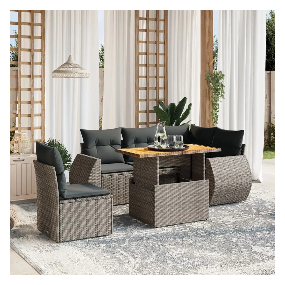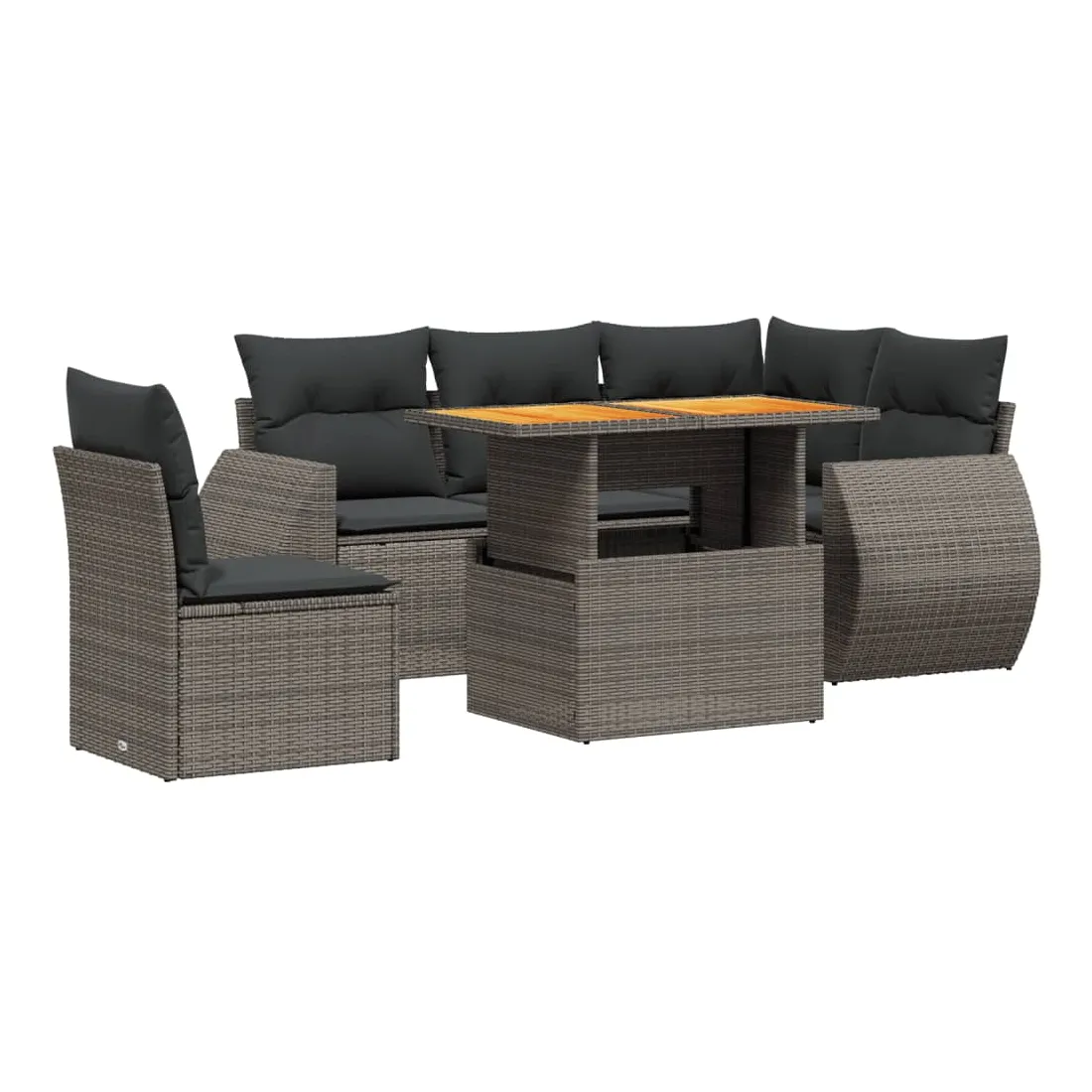 Salon de jardin 6 pcs avec coussins gris résine tressée