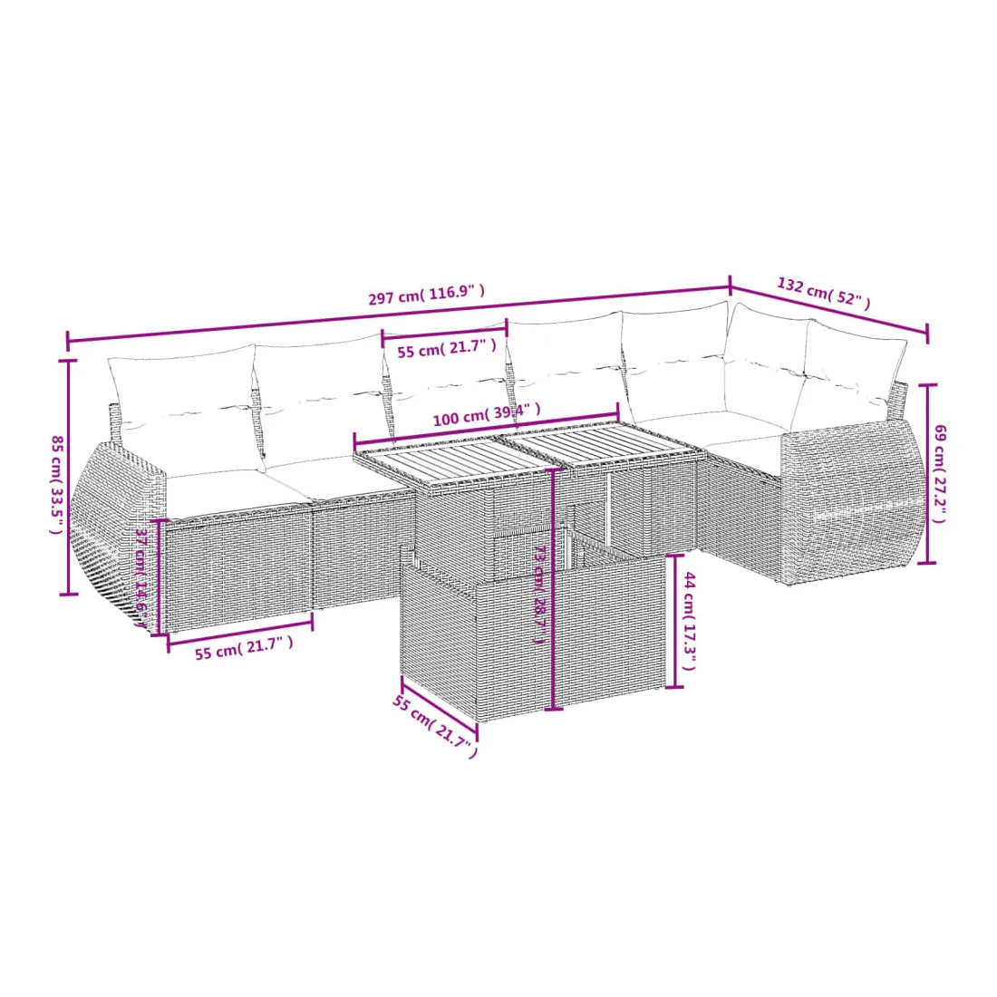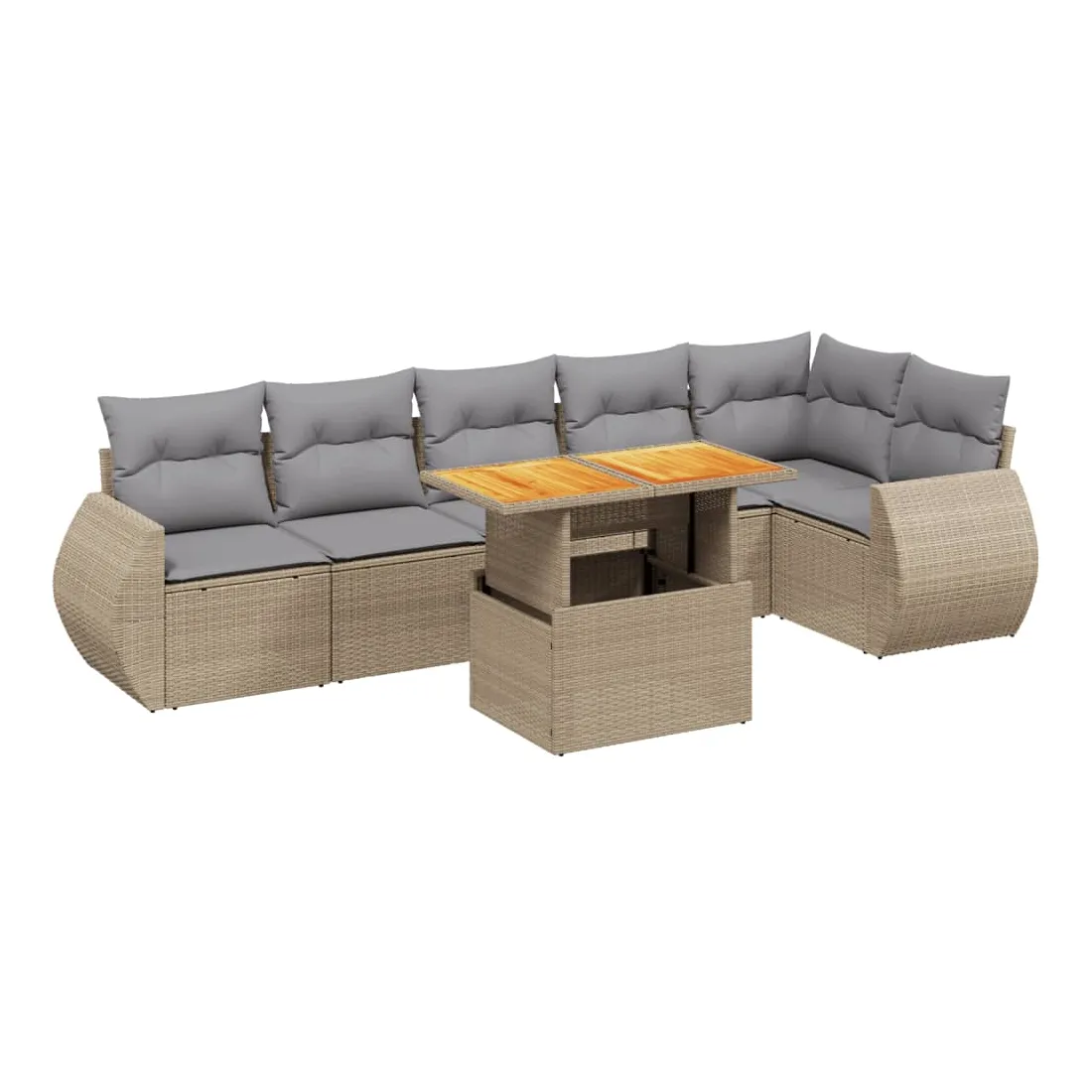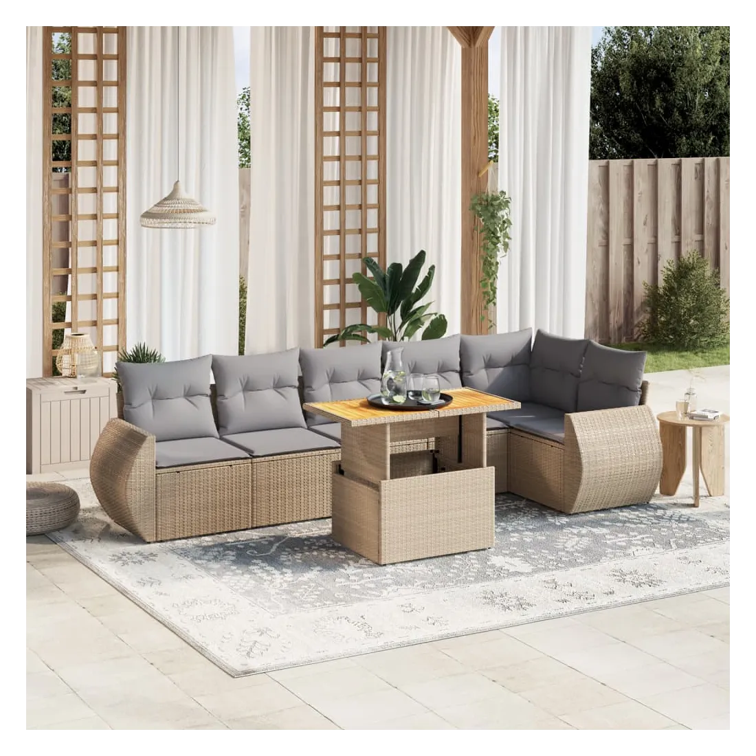 Salon de jardin avec coussins 7 pcs beige résine tressée