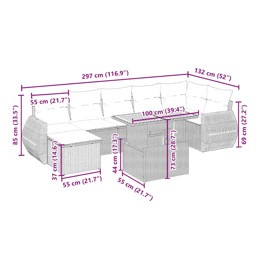 - Dimensions : 55 x 55 x 37 cm (l x P x H)