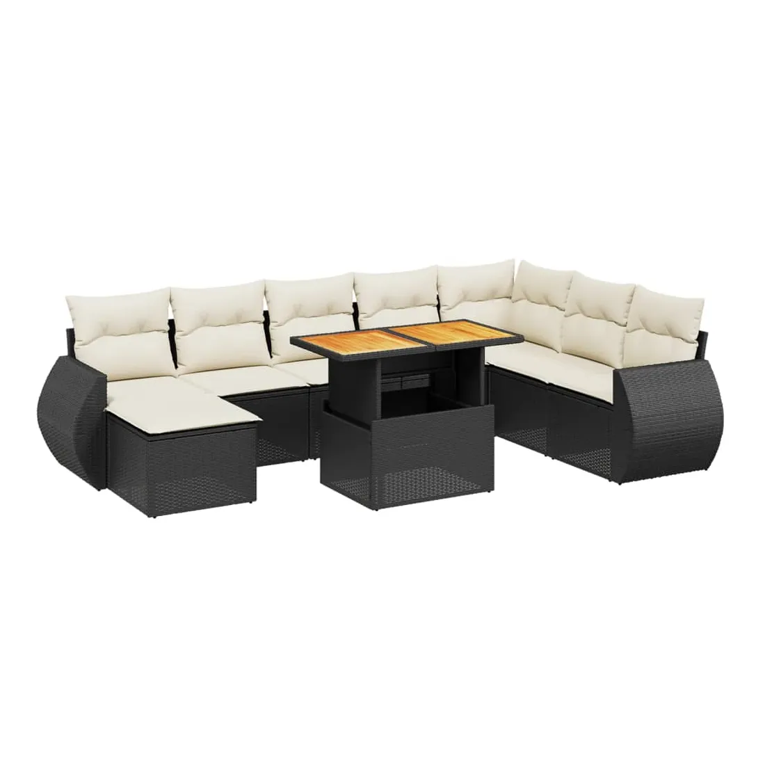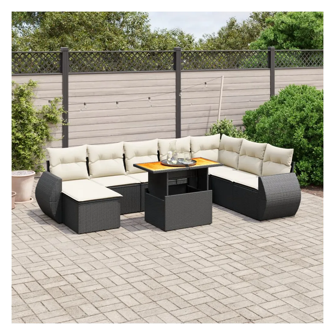 Cet ensemble de canapés de jardin est le complément parfait de votre arrière-cour, terrasse ou patio, offrant un espace confortable et accueillant pour discuter avec la famille et les amis ou simplement se détendre et profiter de l'extérieur. Matériau durable : la résine tressée, également connue sous le nom de poly rotin, est un matériau synthétique solide et nécessitant peu d'entretien qui ressemble au rotin naturel. Il est léger, facile à nettoyer et couramment utilisé pour les meubles d'extérieur en raison de sa durabilité et de ses propriétés de résistance aux intempéries.Dessus de table réglable : le dessus de table peut être soulevé pour rendre la table plus haute, ce qui transforme la table d'extérieur d'une table basse à une table de salle à manger. Elle est parfaite pour recevoir des invités ou prendre des repas à l'extérieur.Expérience d'assise confortable : ce mobilier d'extérieur, doté de coussins épais, offre une expérience d'assise confortable.Housse amovible et lavable : ces coussins de siège sont dotés de housses amovibles pour un lavage et un entretien faciles.Conception modulaire : cet ensemble de meubles d'extérieur a une conception modulaire, ce qui le rend complètement flexible et facile à déplacer, afin que vous puissiez créer un agencement de meubles d'extérieur personnalisé. Bon à savoir :Pour que vos meubles d'extérieur restent beaux, nous vous recommandons de les protéger avec une housse imperméable.