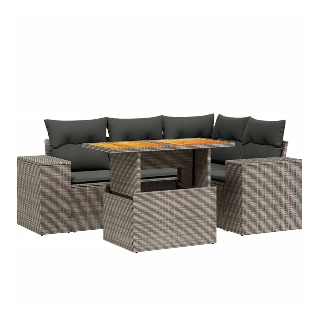 Cet ensemble de canapés de jardin est le complément parfait de votre arrière-cour, terrasse ou patio, offrant un espace confortable et accueillant pour discuter avec la famille et les amis ou simplement se détendre et profiter de l'extérieur. Matériau durable : la résine tressée, également connue sous le nom de poly rotin, est un matériau synthétique solide et nécessitant peu d'entretien qui ressemble au rotin naturel. Il est léger, facile à nettoyer et couramment utilisé pour les meubles d'extérieur en raison de sa durabilité et de ses propriétés de résistance aux intempéries.Dessus de table réglable : le dessus de table peut être soulevé pour rendre la table plus haute, ce qui transforme la table d'extérieur d'une table basse à une table de salle à manger. Elle est parfaite pour recevoir des invités ou prendre des repas à l'extérieur.Expérience d'assise confortable : ce mobilier d'extérieur, doté de coussins épais, offre une expérience d'assise confortable.Housse amovible et lavable : ces coussins de siège sont dotés de housses amovibles pour un lavage et un entretien faciles.Conception modulaire : cet ensemble de meubles d'extérieur a une conception modulaire, ce qui le rend complètement flexible et facile à déplacer, afin que vous puissiez créer un agencement de meubles d'extérieur personnalisé. Bon à savoir :Pour que vos meubles d'extérieur restent beaux, nous vous recommandons de les protéger avec une housse imperméable.