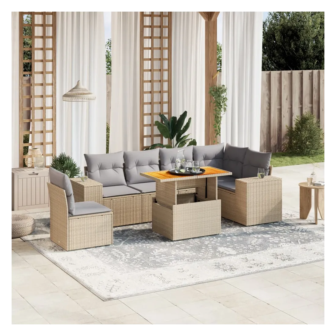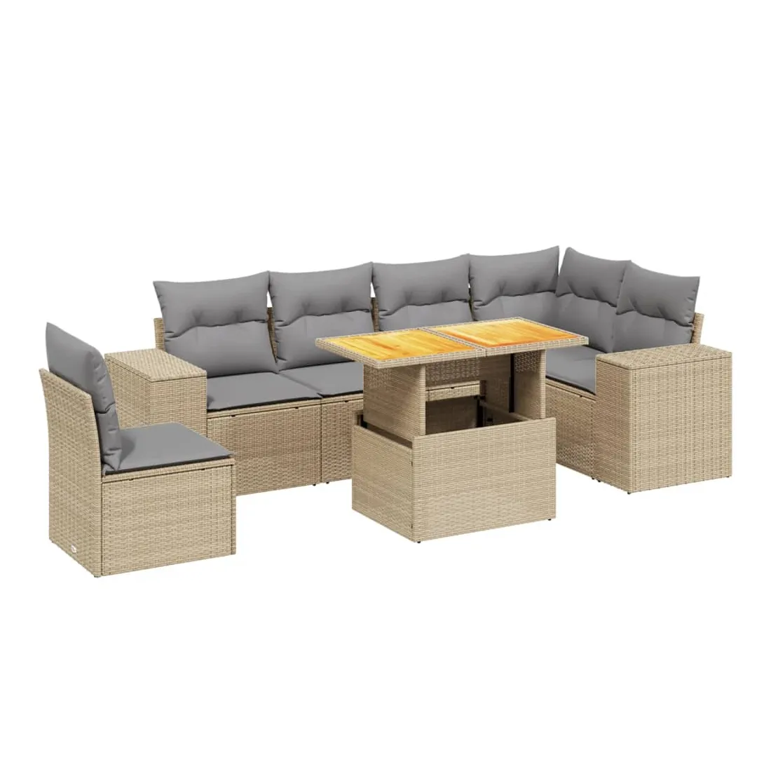 Salon de jardin avec coussins 7 pcs beige résine tressée