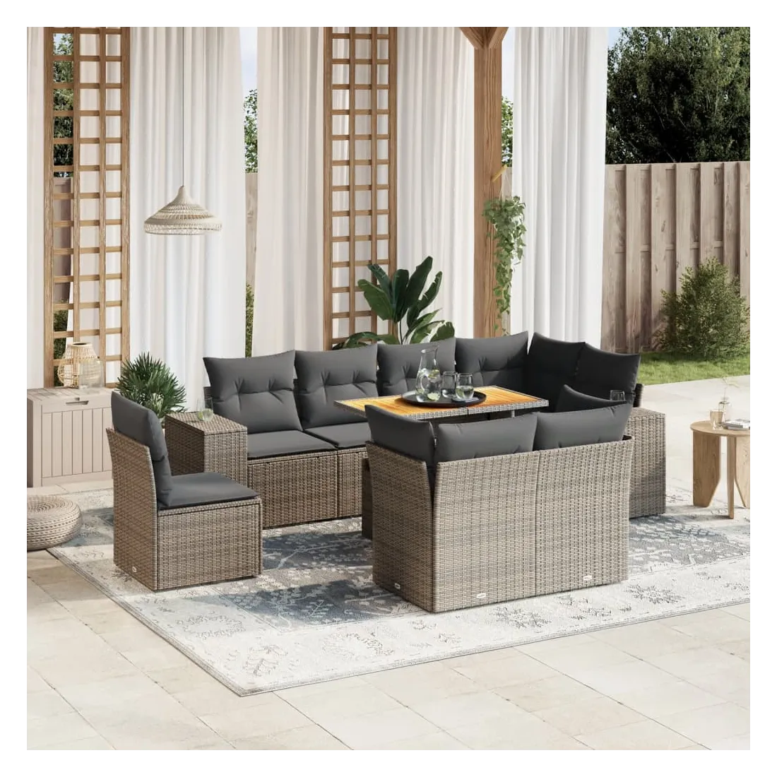 Cet ensemble de canapés de jardin est le complément parfait de votre arrière-cour, terrasse ou patio, offrant un espace confortable et accueillant pour discuter avec la famille et les amis ou simplement se détendre et profiter de l'extérieur. Matériau durable : la résine tressée, également connue sous le nom de poly rotin, est un matériau synthétique solide et nécessitant peu d'entretien qui ressemble au rotin naturel. Il est léger, facile à nettoyer et couramment utilisé pour les meubles d'extérieur en raison de sa durabilité et de ses propriétés de résistance aux intempéries.Dessus de table réglable : le dessus de table peut être soulevé pour rendre la table plus haute, ce qui transforme la table d'extérieur d'une table basse à une table de salle à manger. Elle est parfaite pour recevoir des invités ou prendre des repas à l'extérieur.Expérience d'assise confortable : ce mobilier d'extérieur, doté de coussins épais, offre une expérience d'assise confortable.Housse amovible et lavable : ces coussins de siège sont dotés de housses amovibles pour un lavage et un entretien faciles.Conception modulaire : cet ensemble de meubles d'extérieur a une conception modulaire, ce qui le rend complètement flexible et facile à déplacer, afin que vous puissiez créer un agencement de meubles d'extérieur personnalisé. Bon à savoir :Pour que vos meubles d'extérieur restent beaux, nous vous recommandons de les protéger avec une housse imperméable.