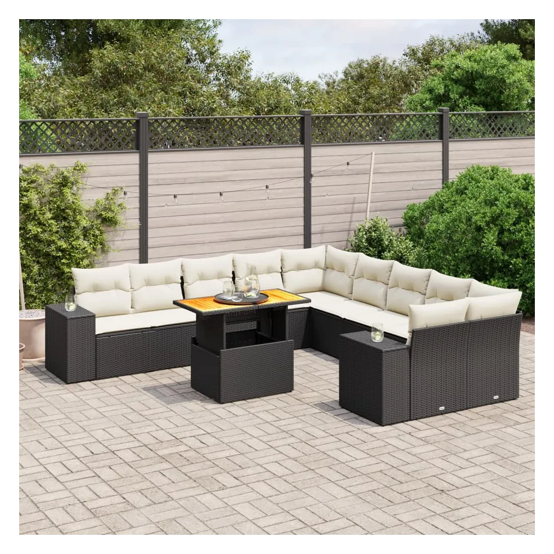 Cet ensemble de canapés de jardin est le complément parfait de votre arrière-cour, terrasse ou patio, offrant un espace confortable et accueillant pour discuter avec la famille et les amis ou simplement se détendre et profiter de l'extérieur. Matériau durable : la résine tressée, également connue sous le nom de poly rotin, est un matériau synthétique solide et nécessitant peu d'entretien qui ressemble au rotin naturel. Il est léger, facile à nettoyer et couramment utilisé pour les meubles d'extérieur en raison de sa durabilité et de ses propriétés de résistance aux intempéries.Dessus de table réglable : le dessus de table peut être soulevé pour rendre la table plus haute, ce qui transforme la table d'extérieur d'une table basse à une table de salle à manger. Elle est parfaite pour recevoir des invités ou prendre des repas à l'extérieur.Expérience d'assise confortable : ce mobilier d'extérieur, doté de coussins épais, offre une expérience d'assise confortable.Housse amovible et lavable : ces coussins de siège sont dotés de housses amovibles pour un lavage et un entretien faciles.Conception modulaire : cet ensemble de meubles d'extérieur a une conception modulaire, ce qui le rend complètement flexible et facile à déplacer, afin que vous puissiez créer un agencement de meubles d'extérieur personnalisé. Bon à savoir :Pour que vos meubles d'extérieur restent beaux, nous vous recommandons de les protéger avec une housse imperméable.