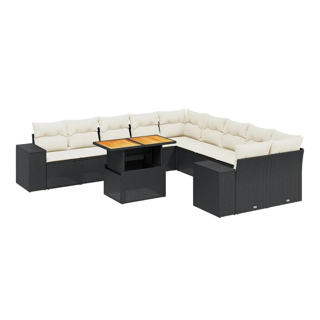 Salon de jardin 11 pcs avec coussins noir résine tressée