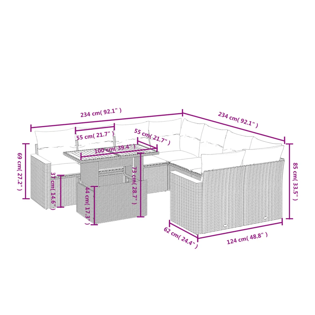 Cet ensemble de canapés de jardin est le complément parfait de votre arrière-cour, terrasse ou patio, offrant un espace confortable et accueillant pour discuter avec la famille et les amis ou simplement se détendre et profiter de l'extérieur. Matériau durable : la résine tressée, également connue sous le nom de poly rotin, est un matériau synthétique solide et nécessitant peu d'entretien qui ressemble au rotin naturel. Il est léger, facile à nettoyer et couramment utilisé pour les meubles d'extérieur en raison de sa durabilité et de ses propriétés de résistance aux intempéries.Dessus de table réglable : le dessus de table peut être soulevé pour rendre la table plus haute, ce qui transforme la table d'extérieur d'une table basse à une table de salle à manger. Elle est parfaite pour recevoir des invités ou prendre des repas à l'extérieur.Expérience d'assise confortable : ce mobilier d'extérieur, doté de coussins épais, offre une expérience d'assise confortable.Housse amovible et lavable : ces coussins de siège sont dotés de housses amovibles pour un lavage et un entretien faciles.Conception modulaire : cet ensemble de meubles d'extérieur a une conception modulaire, ce qui le rend complètement flexible et facile à déplacer, afin que vous puissiez créer un agencement de meubles d'extérieur personnalisé. Bon à savoir :Pour que vos meubles d'extérieur restent beaux, nous vous recommandons de les protéger avec une housse imperméable.