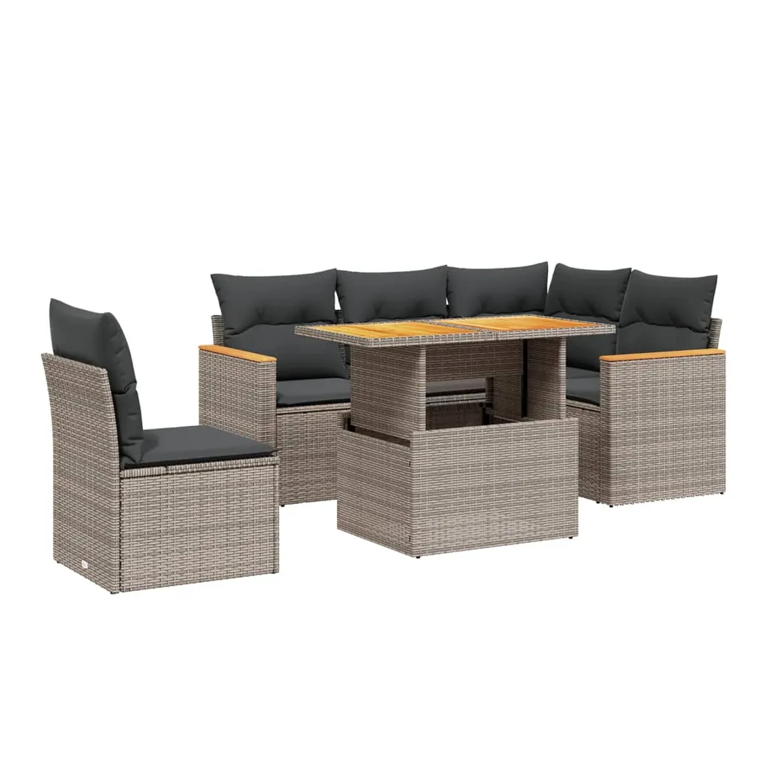 Salon de jardin 6 pcs avec coussins gris résine tressée