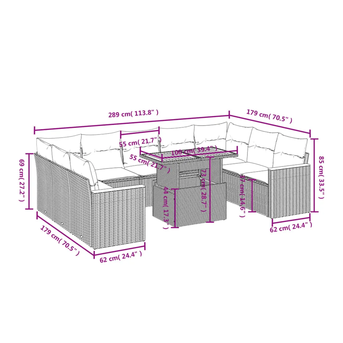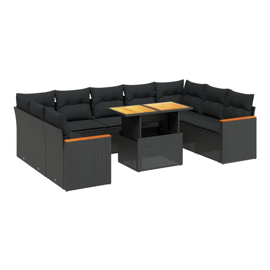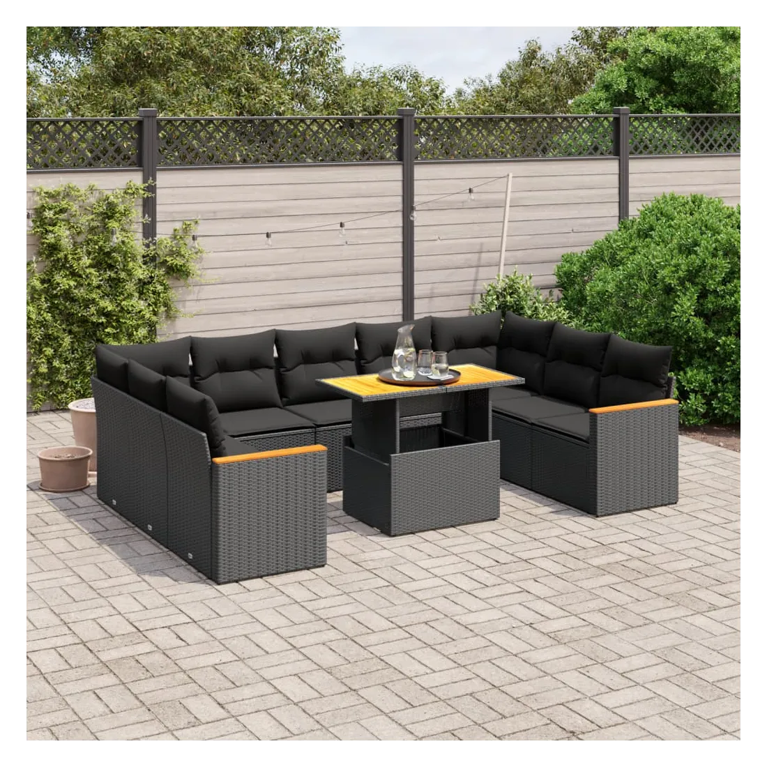 Cet ensemble de canapés de jardin est le complément parfait de votre arrière-cour, terrasse ou patio, offrant un espace confortable et accueillant pour discuter avec la famille et les amis ou simplement se détendre et profiter de l'extérieur. Matériau durable : la résine tressée, également connue sous le nom de poly rotin, est un matériau synthétique solide et nécessitant peu d'entretien qui ressemble au rotin naturel. Il est léger, facile à nettoyer et couramment utilisé pour les meubles d'extérieur en raison de sa durabilité et de ses propriétés de résistance aux intempéries.Dessus de table réglable : le dessus de table peut être soulevé pour rendre la table plus haute, ce qui transforme la table d'extérieur d'une table basse à une table de salle à manger. Elle est parfaite pour recevoir des invités ou prendre des repas à l'extérieur.Expérience d'assise confortable : ce mobilier d'extérieur, doté de coussins épais, offre une expérience d'assise confortable.Housse amovible et lavable : ces coussins de siège sont dotés de housses amovibles pour un lavage et un entretien faciles.Conception modulaire : cet ensemble de meubles d'extérieur a une conception modulaire, ce qui le rend complètement flexible et facile à déplacer, afin que vous puissiez créer un agencement de meubles d'extérieur personnalisé. Bon à savoir :Pour que vos meubles d'extérieur restent beaux, nous vous recommandons de les protéger avec une housse imperméable.