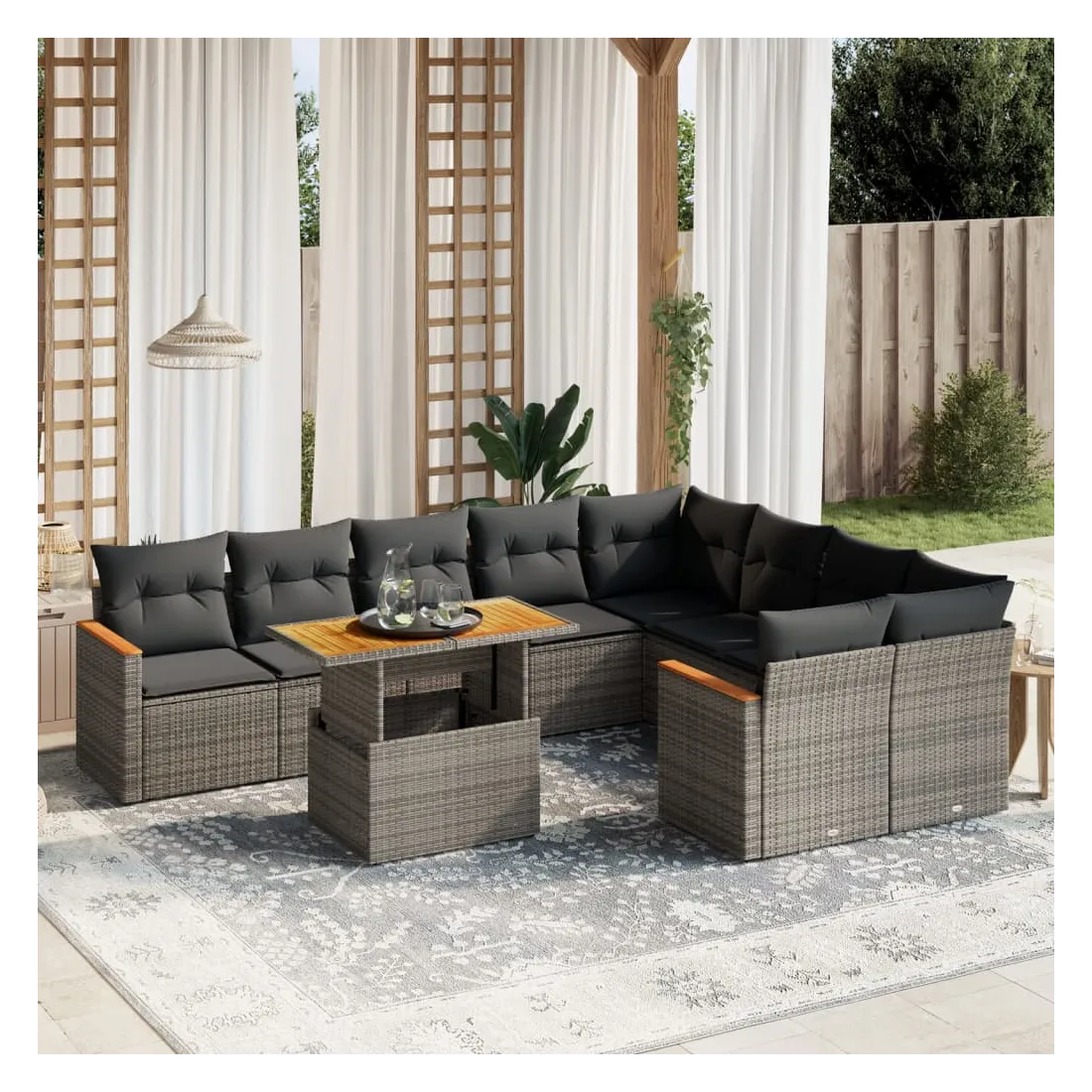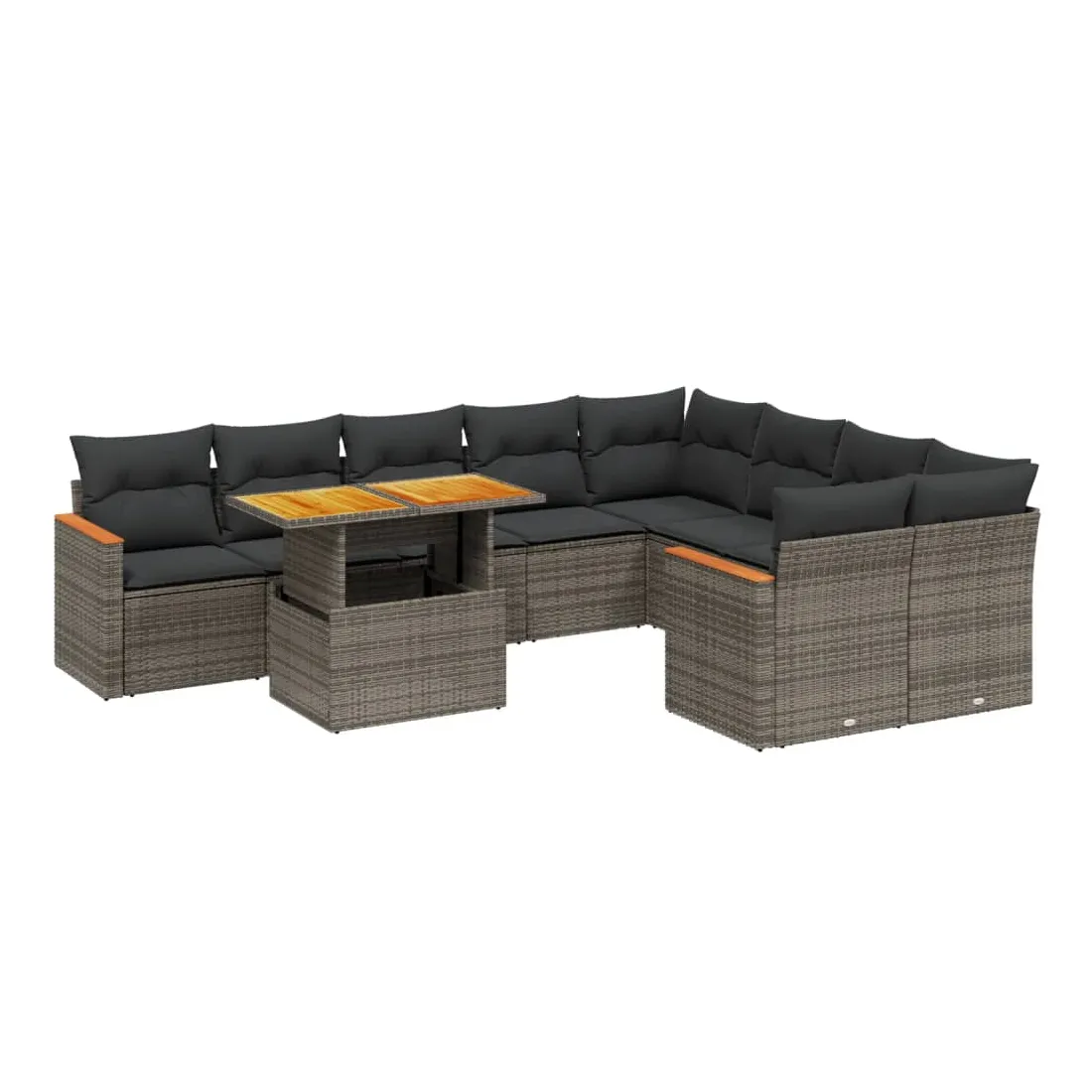Salon de jardin avec coussins 10 pcs gris résine tressée
