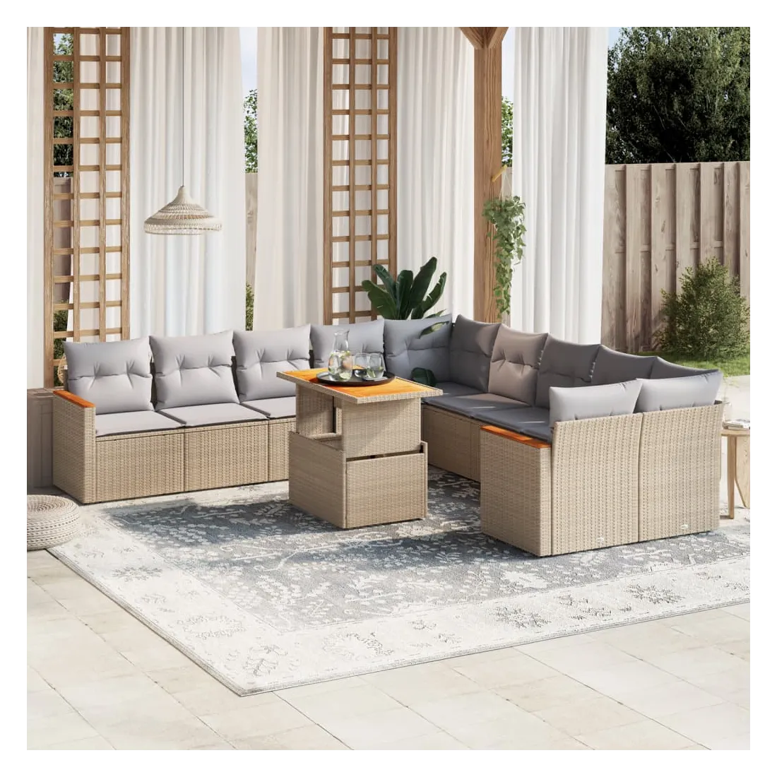 Cet ensemble de canapés de jardin est le complément parfait de votre arrière-cour, terrasse ou patio, offrant un espace confortable et accueillant pour discuter avec la famille et les amis ou simplement se détendre et profiter de l'extérieur. Matériau durable : la résine tressée, également connue sous le nom de poly rotin, est un matériau synthétique solide et nécessitant peu d'entretien qui ressemble au rotin naturel. Il est léger, facile à nettoyer et couramment utilisé pour les meubles d'extérieur en raison de sa durabilité et de ses propriétés de résistance aux intempéries.Dessus de table réglable : le dessus de table peut être soulevé pour rendre la table plus haute, ce qui transforme la table d'extérieur d'une table basse à une table de salle à manger. Elle est parfaite pour recevoir des invités ou prendre des repas à l'extérieur.Expérience d'assise confortable : ce mobilier d'extérieur, doté de coussins épais, offre une expérience d'assise confortable.Housse amovible et lavable : ces coussins de siège sont dotés de housses amovibles pour un lavage et un entretien faciles.Conception modulaire : cet ensemble de meubles d'extérieur a une conception modulaire, ce qui le rend complètement flexible et facile à déplacer, afin que vous puissiez créer un agencement de meubles d'extérieur personnalisé. Bon à savoir :Pour que vos meubles d'extérieur restent beaux, nous vous recommandons de les protéger avec une housse imperméable.