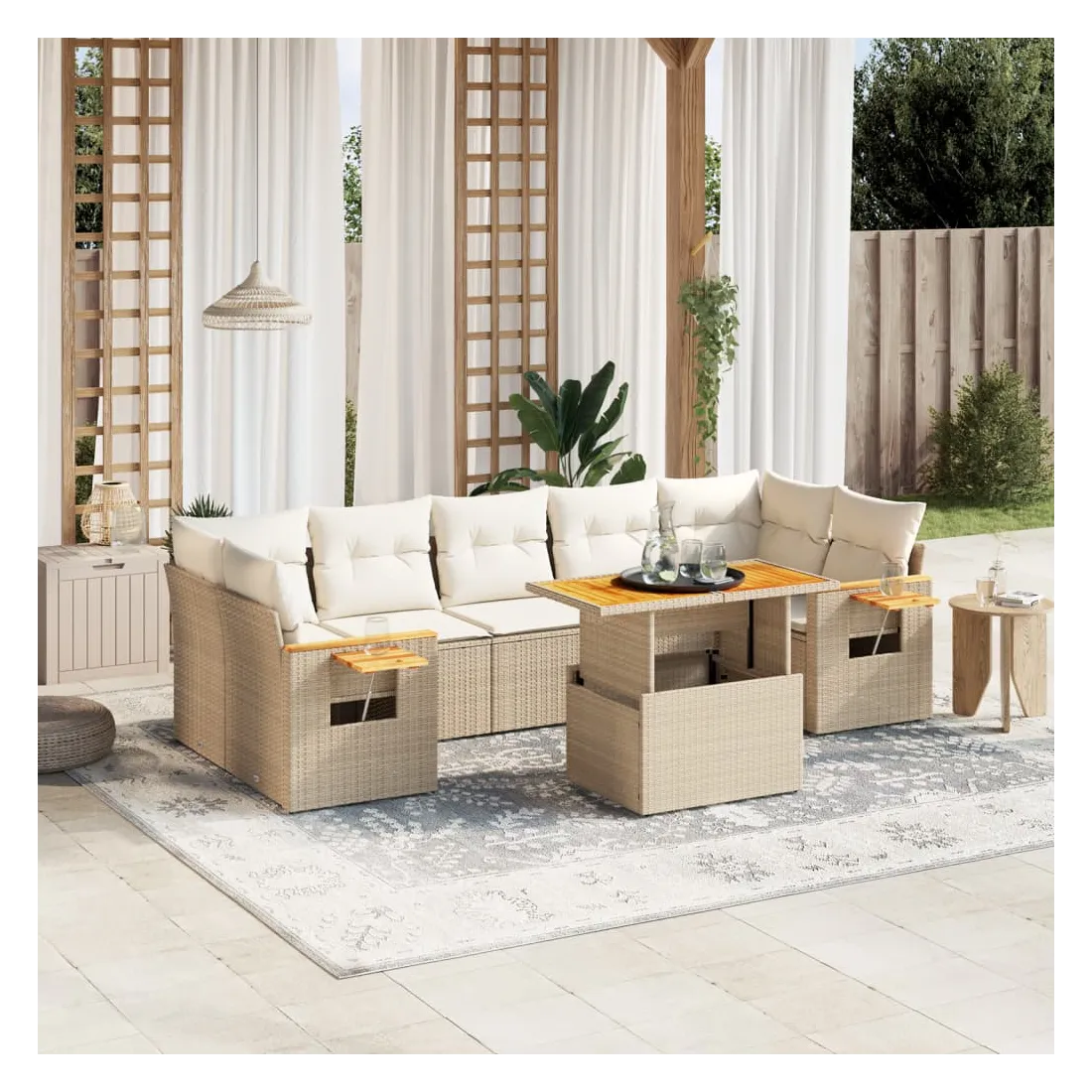 Cet ensemble de canapés de jardin est le complément parfait de votre arrière-cour, terrasse ou patio, offrant un espace confortable et accueillant pour discuter avec la famille et les amis ou simplement se détendre et profiter de l'extérieur. Matériau durable : la résine tressée, également connue sous le nom de poly rotin, est un matériau synthétique solide et nécessitant peu d'entretien qui ressemble au rotin naturel. Il est léger, facile à nettoyer et couramment utilisé pour les meubles d'extérieur en raison de sa durabilité et de ses propriétés de résistance aux intempéries.Dessus de table réglable : le dessus de table peut être soulevé pour rendre la table plus haute, ce qui transforme la table d'extérieur d'une table basse à une table de salle à manger. Elle est parfaite pour recevoir des invités ou prendre des repas à l'extérieur.Table d'appoint pratique : ce mobilier d'extérieur comprend une table d'appoint pliable avec un ressort à gaz sur les accoudoirs, offrant un endroit pratique pour garder vos essentiels à portée de main.Housse amovible et lavable : ces coussins de siège sont dotés de housses amovibles pour un lavage et un entretien faciles.Conception modulaire : cet ensemble de meubles d'extérieur a une conception modulaire, ce qui le rend complètement flexible et facile à déplacer, afin que vous puissiez créer un agencement de meubles d'extérieur personnalisé. Bon à savoir :Pour que vos meubles d'extérieur restent beaux, nous vous recommandons de les protéger avec une housse imperméable.