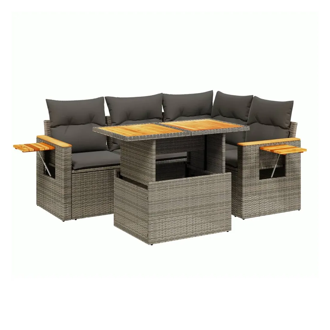 Cet ensemble de canapés de jardin est le complément parfait de votre arrière-cour, terrasse ou patio, offrant un espace confortable et accueillant pour discuter avec la famille et les amis ou simplement se détendre et profiter de l'extérieur. Matériau durable : la résine tressée, également connue sous le nom de poly rotin, est un matériau synthétique solide et nécessitant peu d'entretien qui ressemble au rotin naturel. Il est léger, facile à nettoyer et couramment utilisé pour les meubles d'extérieur en raison de sa durabilité et de ses propriétés de résistance aux intempéries.Dessus de table réglable : le dessus de table peut être soulevé pour rendre la table plus haute, ce qui transforme la table d'extérieur d'une table basse à une table de salle à manger. Elle est parfaite pour recevoir des invités ou prendre des repas à l'extérieur.Table d'appoint pratique : ce mobilier d'extérieur comprend une table d'appoint pliable avec un ressort à gaz sur les accoudoirs, offrant un endroit pratique pour garder vos essentiels à portée de main.Housse amovible et lavable : ces coussins de siège sont dotés de housses amovibles pour un lavage et un entretien faciles.Conception modulaire : cet ensemble de meubles d'extérieur a une conception modulaire, ce qui le rend complètement flexible et facile à déplacer, afin que vous puissiez créer un agencement de meubles d'extérieur personnalisé. Bon à savoir :Pour que vos meubles d'extérieur restent beaux, nous vous recommandons de les protéger avec une housse imperméable.