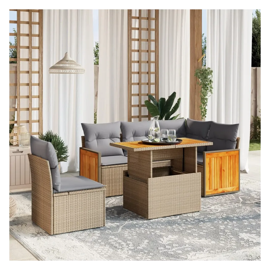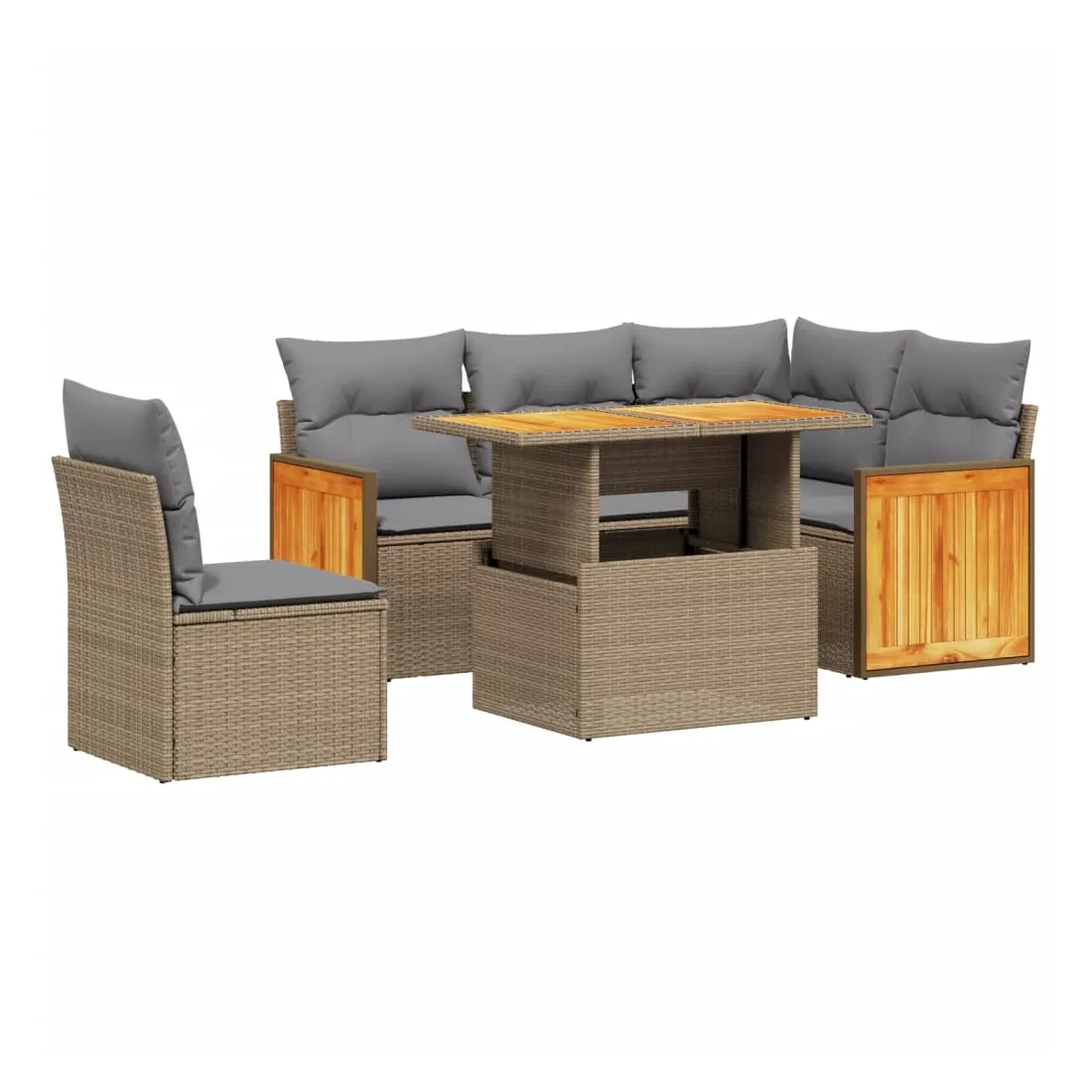 Salon de jardin avec coussins 6 pcs beige résine tressée