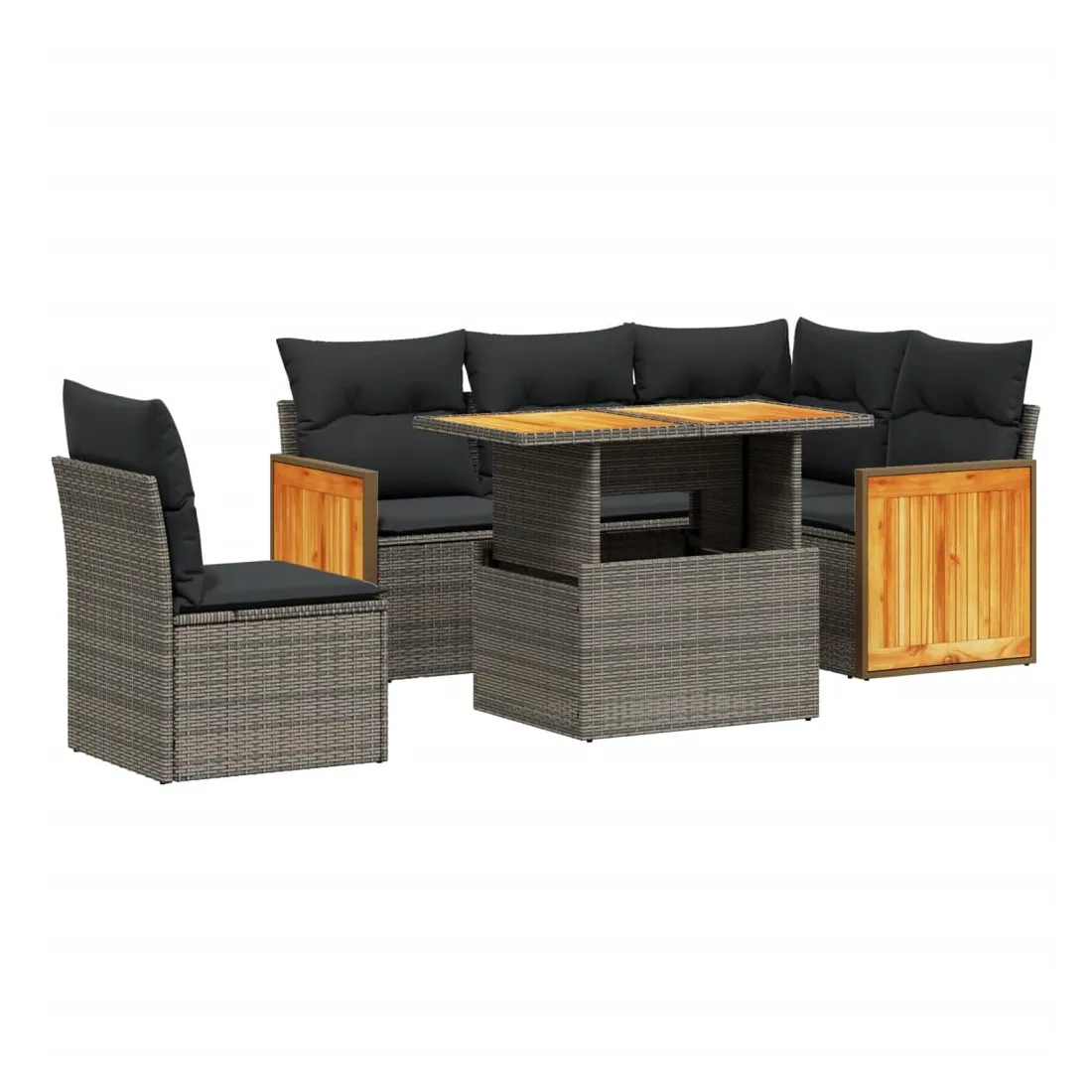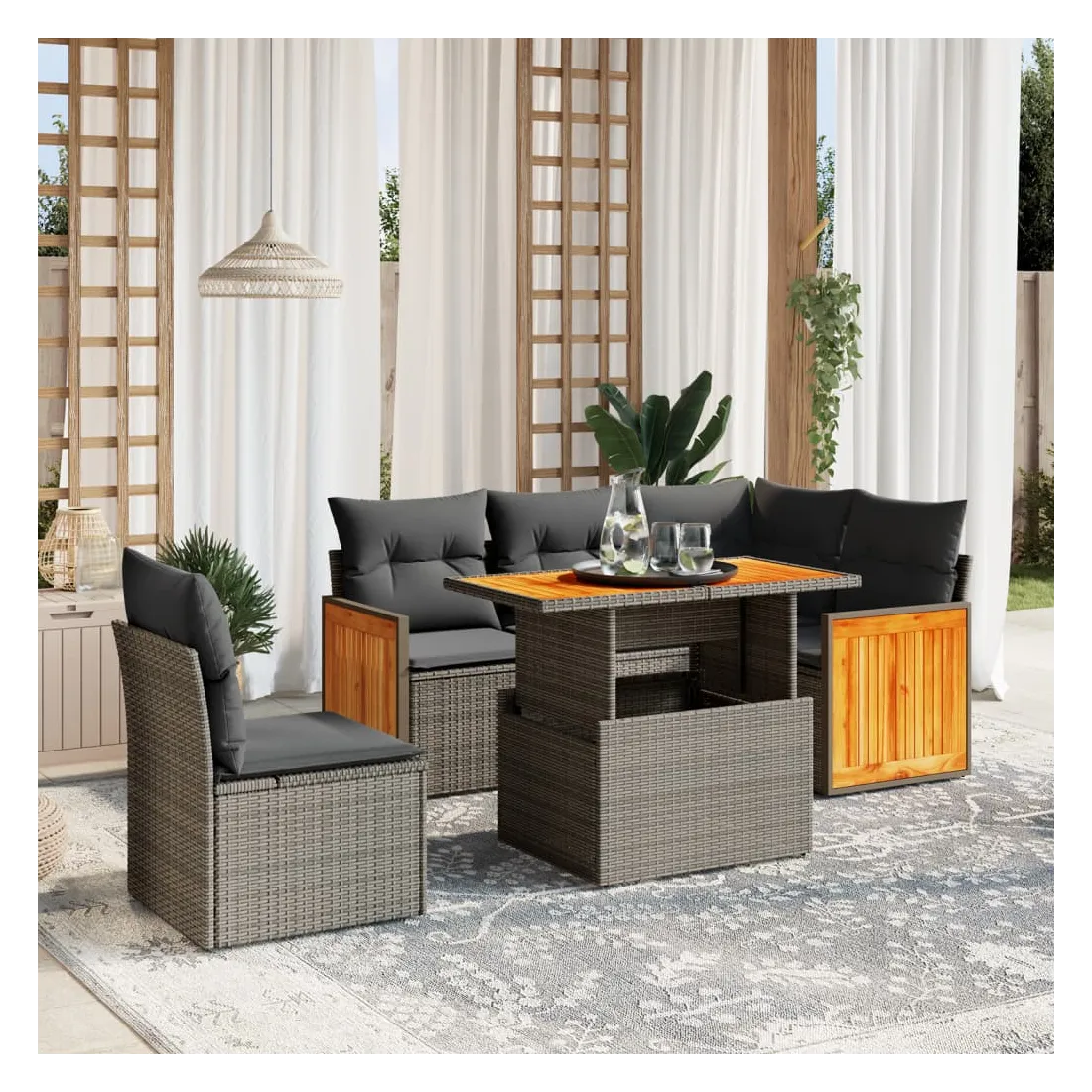 Cet ensemble de canapés de jardin est le complément parfait de votre arrière-cour, terrasse ou patio, offrant un espace confortable et accueillant pour discuter avec la famille et les amis ou simplement se détendre et profiter de l'extérieur. Matériau durable : la résine tressée, également connue sous le nom de poly rotin, est un matériau synthétique solide et nécessitant peu d'entretien qui ressemble au rotin naturel. Il est léger, facile à nettoyer et couramment utilisé pour les meubles d'extérieur en raison de sa durabilité et de ses propriétés de résistance aux intempéries.Dessus de table réglable : le dessus de table peut être soulevé pour rendre la table plus haute, ce qui transforme la table d'extérieur d'une table basse à une table de salle à manger. Elle est parfaite pour recevoir des invités ou prendre des repas à l'extérieur.Housse amovible et lavable : ces coussins de siège sont dotés de housses amovibles pour un lavage et un entretien faciles.Conception modulaire : cet ensemble de meubles d'extérieur a une conception modulaire, ce qui le rend complètement flexible et facile à déplacer, afin que vous puissiez créer un agencement de meubles d'extérieur personnalisé. Bon à savoir :Pour que vos meubles d'extérieur restent beaux, nous vous recommandons de les protéger avec une housse imperméable.