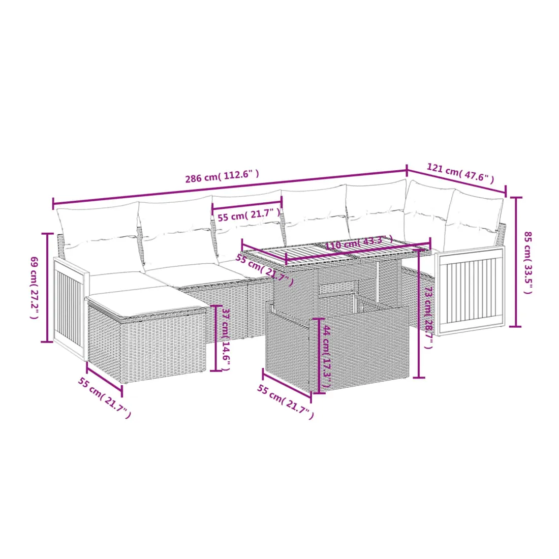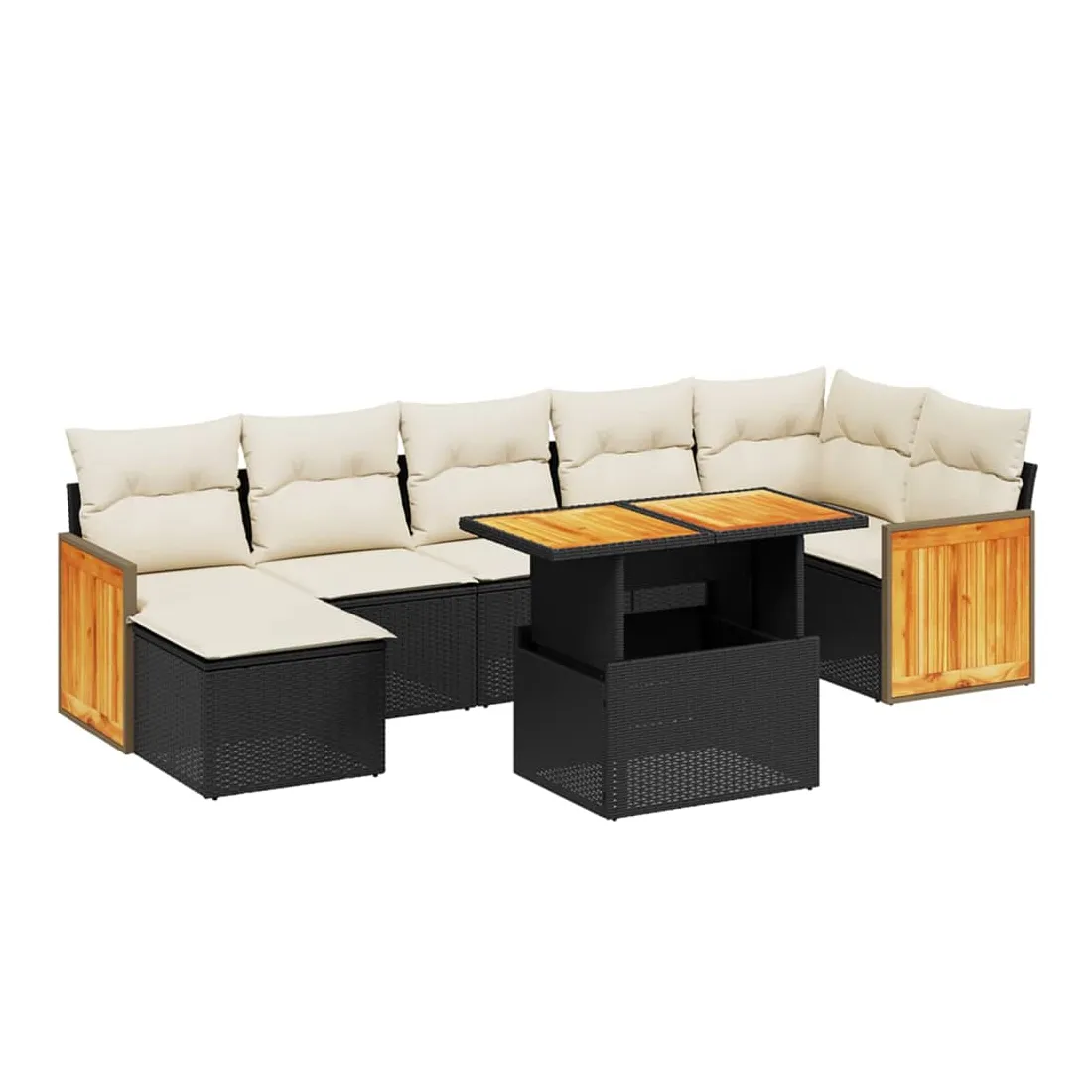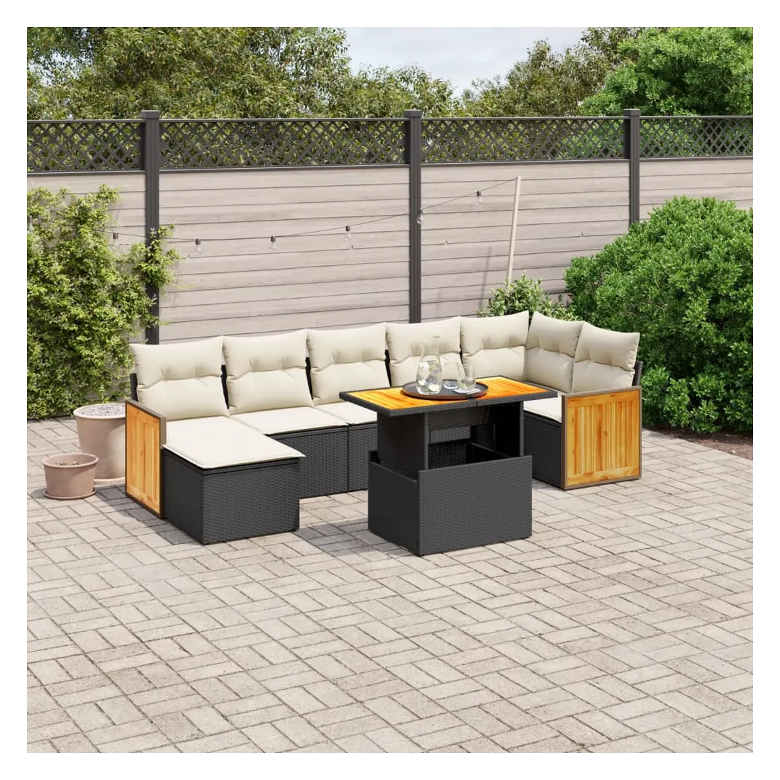 Cet ensemble de canapés de jardin est le complément parfait de votre arrière-cour, terrasse ou patio, offrant un espace confortable et accueillant pour discuter avec la famille et les amis ou simplement se détendre et profiter de l'extérieur. Matériau durable : la résine tressée, également connue sous le nom de poly rotin, est un matériau synthétique solide et nécessitant peu d'entretien qui ressemble au rotin naturel. Il est léger, facile à nettoyer et couramment utilisé pour les meubles d'extérieur en raison de sa durabilité et de ses propriétés de résistance aux intempéries.Dessus de table réglable : le dessus de table peut être soulevé pour rendre la table plus haute, ce qui transforme la table d'extérieur d'une table basse à une table de salle à manger. Elle est parfaite pour recevoir des invités ou prendre des repas à l'extérieur.Housse amovible et lavable : ces coussins de siège sont dotés de housses amovibles pour un lavage et un entretien faciles.Conception modulaire : cet ensemble de meubles d'extérieur a une conception modulaire, ce qui le rend complètement flexible et facile à déplacer, afin que vous puissiez créer un agencement de meubles d'extérieur personnalisé. Bon à savoir :Pour que vos meubles d'extérieur restent beaux, nous vous recommandons de les protéger avec une housse imperméable.