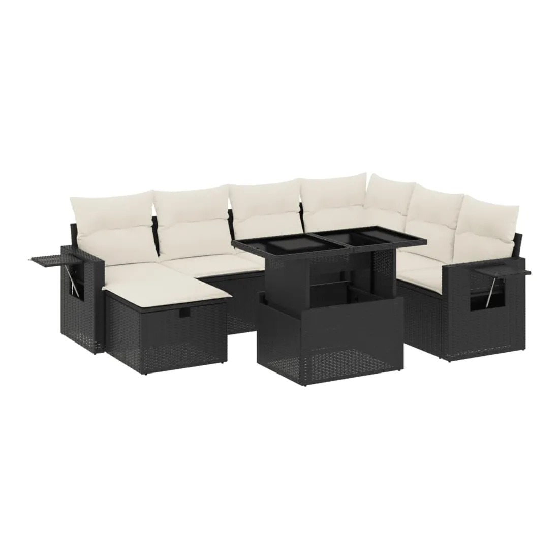 Cet ensemble de canapés de jardin est le complément parfait de votre arrière-cour, terrasse ou patio, offrant un espace confortable et accueillant pour discuter avec la famille et les amis ou simplement se détendre et profiter de l'extérieur. Matériau durable : la résine tressée, également connue sous le nom de poly rotin, est un matériau synthétique solide et nécessitant peu d'entretien qui ressemble au rotin naturel. Il est léger, facile à nettoyer et couramment utilisé pour les meubles d'extérieur en raison de sa durabilité et de ses propriétés de résistance aux intempéries.Dessus de table réglable : le dessus de table peut être soulevé pour rendre la table plus haute, ce qui transforme la table d'extérieur d'une table basse à une table de salle à manger. Elle est parfaite pour recevoir des invités ou prendre des repas à l'extérieur.Housse amovible et lavable : ces coussins de siège sont dotés de housses amovibles pour un lavage et un entretien faciles.Conception modulaire : cet ensemble de meubles d'extérieur a une conception modulaire, ce qui le rend complètement flexible et facile à déplacer, afin que vous puissiez créer un agencement de meubles d'extérieur personnalisé. Bon à savoir :Pour que vos meubles d'extérieur restent beaux, nous vous recommandons de les protéger avec une housse imperméable.