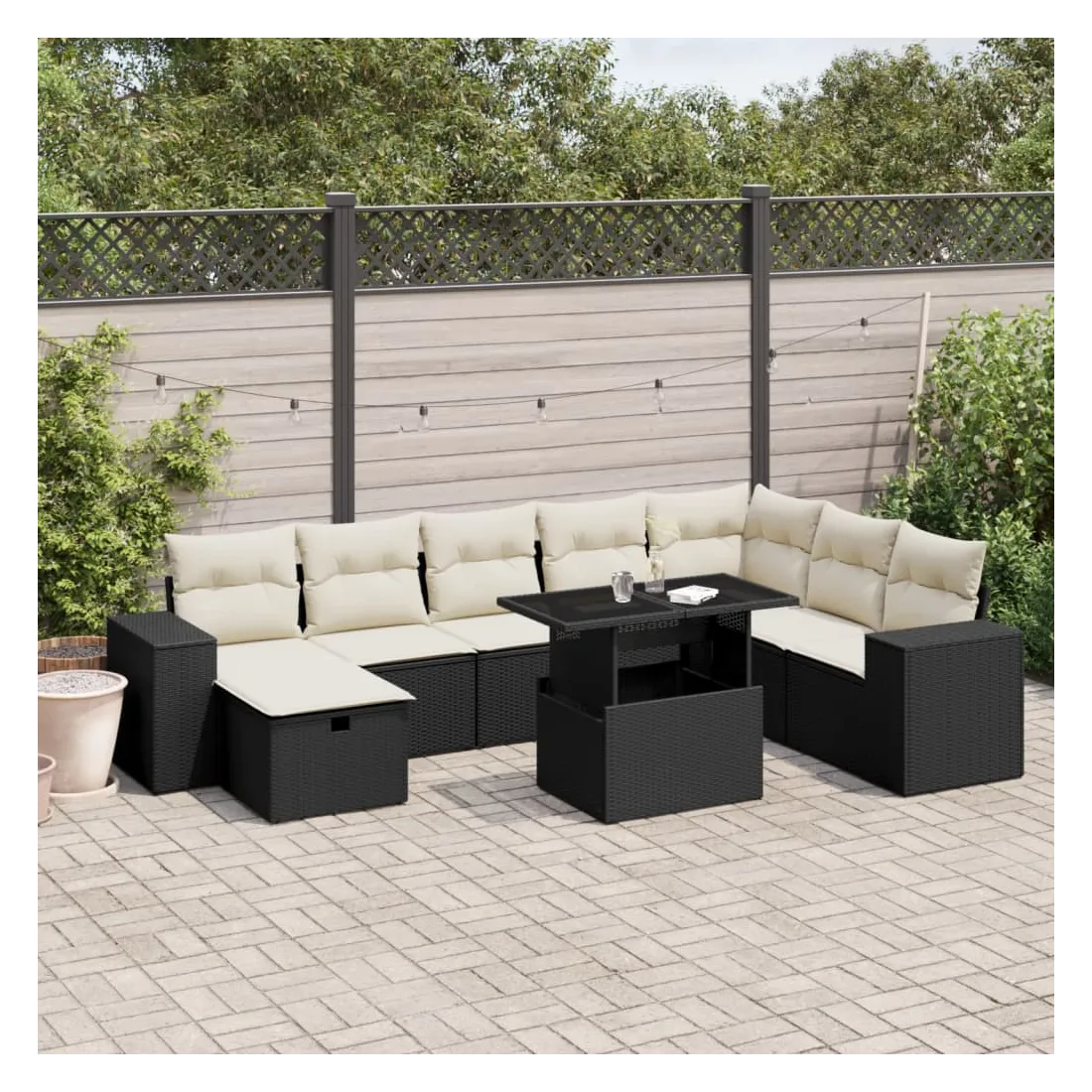 Cet ensemble de canapés de jardin est le complément parfait de votre arrière-cour, terrasse ou patio, offrant un espace confortable et accueillant pour discuter avec la famille et les amis ou simplement se détendre et profiter de l'extérieur. Matériau durable : la résine tressée, également connue sous le nom de poly rotin, est un matériau synthétique solide et nécessitant peu d'entretien qui ressemble au rotin naturel. Il est léger, facile à nettoyer et couramment utilisé pour les meubles d'extérieur en raison de sa durabilité et de ses propriétés de résistance aux intempéries.Dessus de table réglable : le dessus de table peut être soulevé pour rendre la table plus haute, ce qui transforme la table d'extérieur d'une table basse à une table de salle à manger. Elle est parfaite pour recevoir des invités ou prendre des repas à l'extérieur.Dessus en verre : le dessus de la table d'extérieur est fabriqué en verre trempé solide et durable, ce qui le rend facile à nettoyer avec un chiffon humide et ajoute une touche d'élégance à votre espace extérieur.Housse amovible et lavable : ces coussins de siège sont dotés de housses amovibles pour un lavage et un entretien faciles.Conception modulaire : cet ensemble de meubles d'extérieur a une conception modulaire, ce qui le rend complètement flexible et facile à déplacer, afin que vous puissiez créer un agencement de meubles d'extérieur personnalisé. Bon à savoir :Pour que vos meubles d'extérieur restent beaux, nous vous recommandons de les protéger avec une housse imperméable.