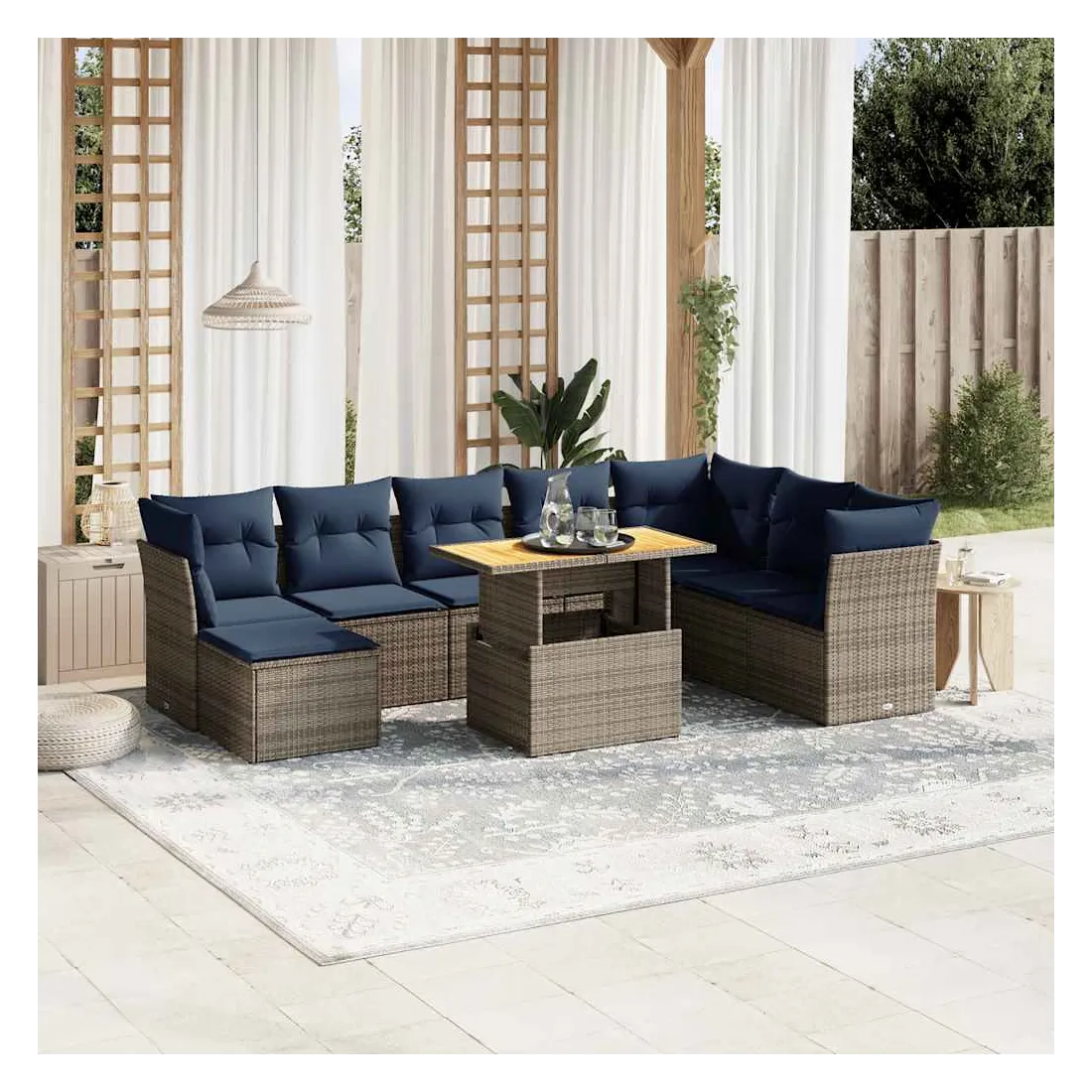 Cet ensemble de canapés de jardin est le complément parfait de votre arrière-cour, terrasse ou patio, offrant un espace confortable et accueillant pour discuter avec la famille et les amis ou simplement se détendre et profiter de l'extérieur. Matériau durable : la résine tressée, également connue sous le nom de poly rotin, est un matériau synthétique solide et nécessitant peu d'entretien qui ressemble au rotin naturel. Il est léger, facile à nettoyer et couramment utilisé pour les meubles d'extérieur en raison de sa durabilité et de ses propriétés de résistance aux intempéries.Dessus de table réglable : le dessus de table peut être soulevé pour rendre la table plus haute, ce qui transforme la table d'extérieur d'une table basse à une table de salle à manger. Elle est parfaite pour recevoir des invités ou prendre des repas à l'extérieur.Housse amovible et lavable : ces coussins de siège sont dotés de housses amovibles pour un lavage et un entretien faciles.Conception modulaire : cet ensemble de meubles d'extérieur a une conception modulaire, ce qui le rend complètement flexible et facile à déplacer, afin que vous puissiez créer un agencement de meubles d'extérieur personnalisé. Bon à savoir :Pour que vos meubles d'extérieur restent beaux, nous vous recommandons de les protéger avec une housse imperméable.