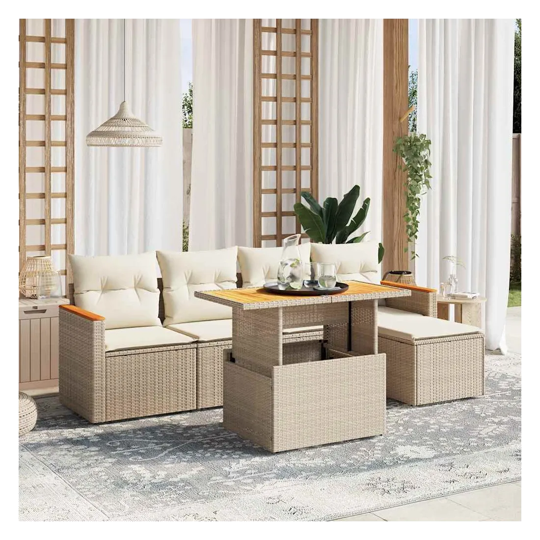 Cet ensemble de canapés de jardin est le complément parfait de votre arrière-cour, terrasse ou patio, offrant un espace confortable et accueillant pour discuter avec la famille et les amis ou simplement se détendre et profiter de l'extérieur. Matériau durable : la résine tressée, également connue sous le nom de poly rotin, est un matériau synthétique solide et nécessitant peu d'entretien qui ressemble au rotin naturel. Il est léger, facile à nettoyer et couramment utilisé pour les meubles d'extérieur en raison de sa durabilité et de ses propriétés de résistance aux intempéries.Dessus de table réglable : le dessus de table peut être soulevé pour rendre la table plus haute, ce qui transforme la table d'extérieur d'une table basse à une table de salle à manger. Elle est parfaite pour recevoir des invités ou prendre des repas à l'extérieur.Housse amovible et lavable : ces coussins de siège sont dotés de housses amovibles pour un lavage et un entretien faciles.Conception modulaire : cet ensemble de meubles d'extérieur a une conception modulaire, ce qui le rend complètement flexible et facile à déplacer, afin que vous puissiez créer un agencement de meubles d'extérieur personnalisé. Bon à savoir :Pour que vos meubles d'extérieur restent beaux, nous vous recommandons de les protéger avec une housse imperméable.
