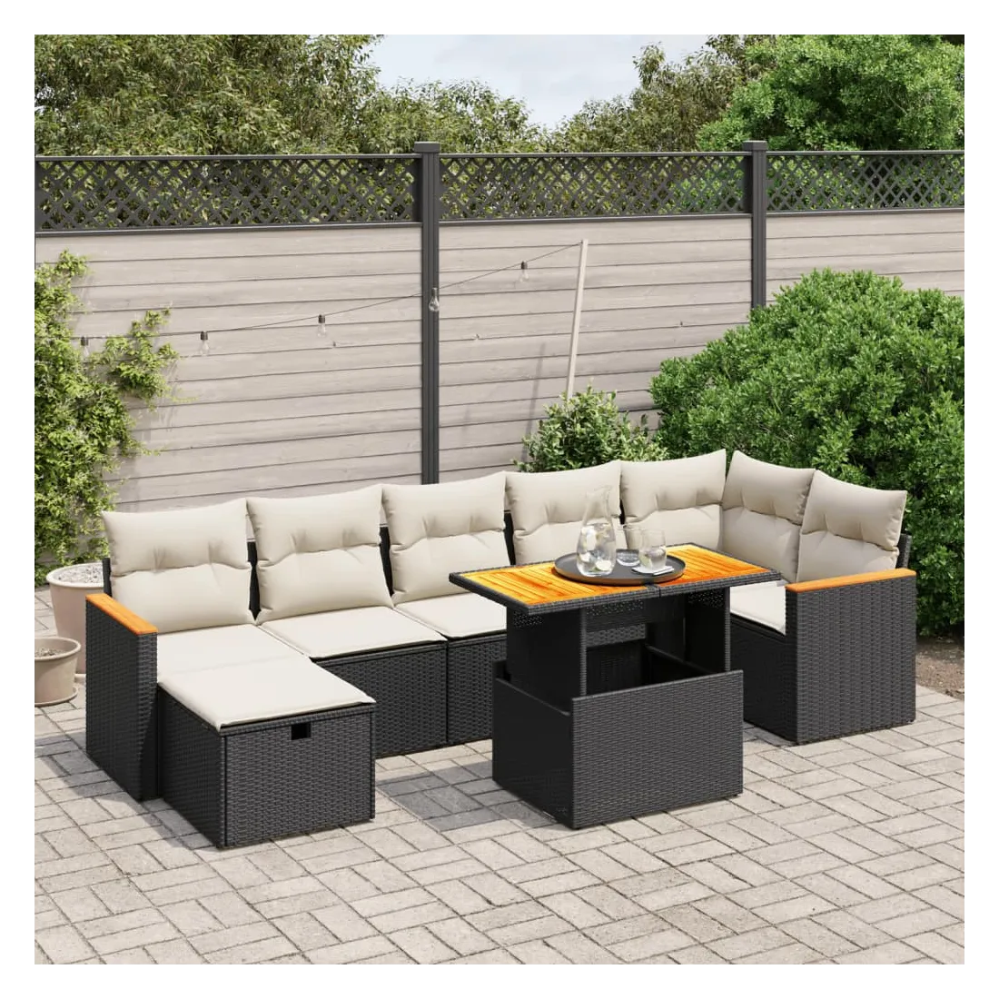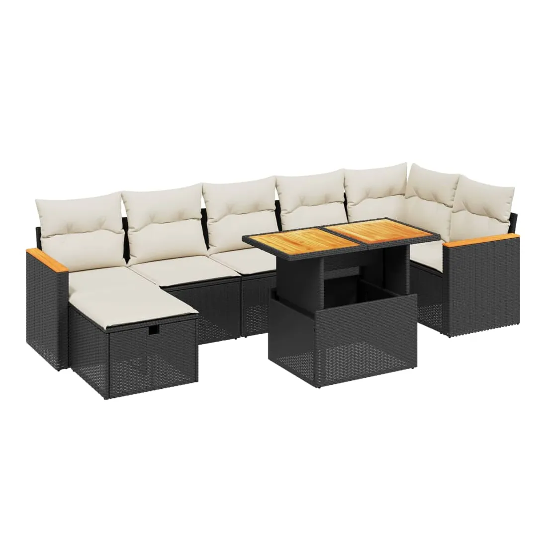 Salon de jardin 8 pcs avec coussins noir résine tressée