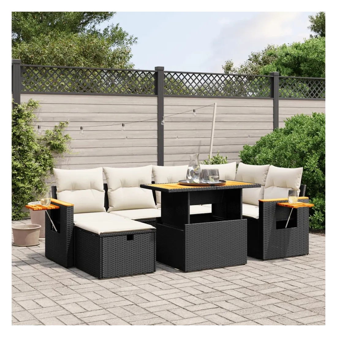 Cet ensemble de canapés de jardin est le complément parfait de votre arrière-cour, terrasse ou patio, offrant un espace confortable et accueillant pour discuter avec la famille et les amis ou simplement se détendre et profiter de l'extérieur. Matériau durable : la résine tressée, également connue sous le nom de poly rotin, est un matériau synthétique solide et nécessitant peu d'entretien qui ressemble au rotin naturel. Il est léger, facile à nettoyer et couramment utilisé pour les meubles d'extérieur en raison de sa durabilité et de ses propriétés de résistance aux intempéries.Dessus de table réglable : le dessus de table peut être soulevé pour rendre la table plus haute, ce qui transforme la table d'extérieur d'une table basse à une table de salle à manger. Elle est parfaite pour recevoir des invités ou prendre des repas à l'extérieur.Table d'appoint pratique : ce mobilier d'extérieur comprend une table d'appoint pliable avec un ressort à gaz sur les accoudoirs, offrant un endroit pratique pour garder vos essentiels à portée de main.Housse amovible et lavable : ces coussins de siège sont dotés de housses amovibles pour un lavage et un entretien faciles.Conception modulaire : cet ensemble de meubles d'extérieur a une conception modulaire, ce qui le rend complètement flexible et facile à déplacer, afin que vous puissiez créer un agencement de meubles d'extérieur personnalisé. Bon à savoir :Pour que vos meubles d'extérieur restent beaux, nous vous recommandons de les protéger avec une housse imperméable.