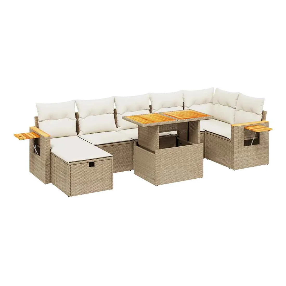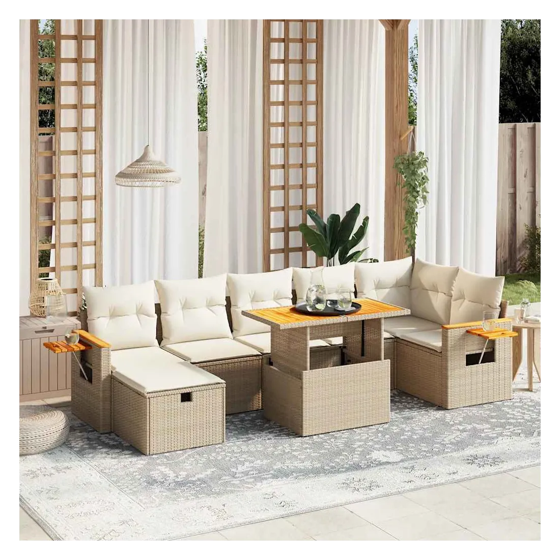 Salon de jardin avec coussins 8 pcs beige résine tressée