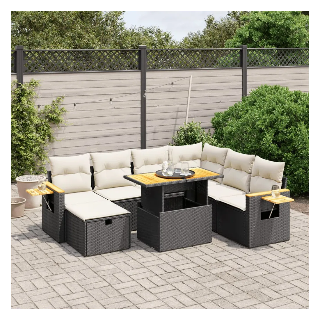Cet ensemble de canapés de jardin est le complément parfait de votre arrière-cour, terrasse ou patio, offrant un espace confortable et accueillant pour discuter avec la famille et les amis ou simplement se détendre et profiter de l'extérieur. Matériau durable : la résine tressée, également connue sous le nom de poly rotin, est un matériau synthétique solide et nécessitant peu d'entretien qui ressemble au rotin naturel. Il est léger, facile à nettoyer et couramment utilisé pour les meubles d'extérieur en raison de sa durabilité et de ses propriétés de résistance aux intempéries.Dessus de table réglable : le dessus de table peut être soulevé pour rendre la table plus haute, ce qui transforme la table d'extérieur d'une table basse à une table de salle à manger. Elle est parfaite pour recevoir des invités ou prendre des repas à l'extérieur.Table d'appoint pratique : ce mobilier d'extérieur comprend une table d'appoint pliable avec un ressort à gaz sur les accoudoirs, offrant un endroit pratique pour garder vos essentiels à portée de main.Housse amovible et lavable : ces coussins de siège sont dotés de housses amovibles pour un lavage et un entretien faciles.Conception modulaire : cet ensemble de meubles d'extérieur a une conception modulaire, ce qui le rend complètement flexible et facile à déplacer, afin que vous puissiez créer un agencement de meubles d'extérieur personnalisé. Bon à savoir :Pour que vos meubles d'extérieur restent beaux, nous vous recommandons de les protéger avec une housse imperméable.